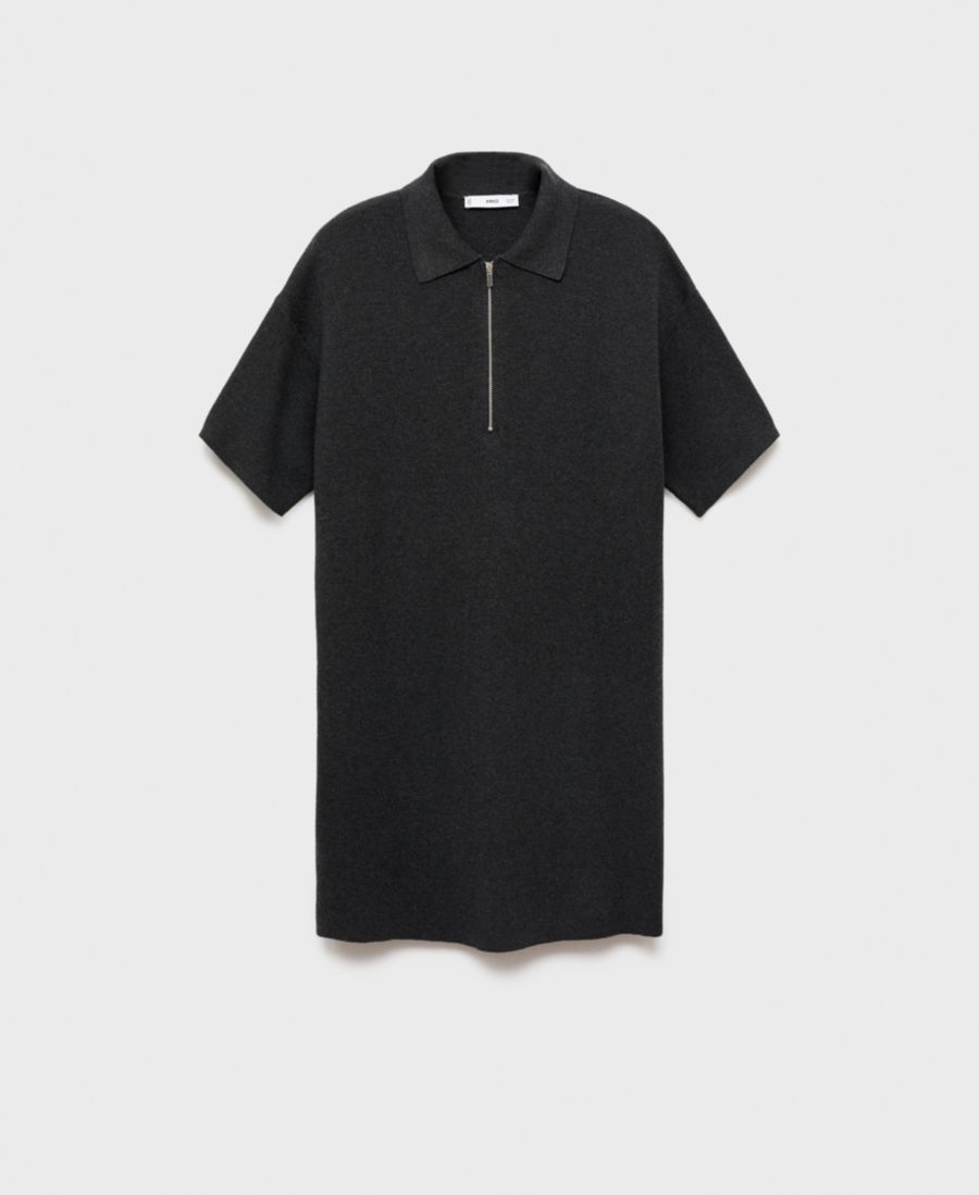 Женское вязаное платье с воротником-поло MANGO, Dark Heather Gray
