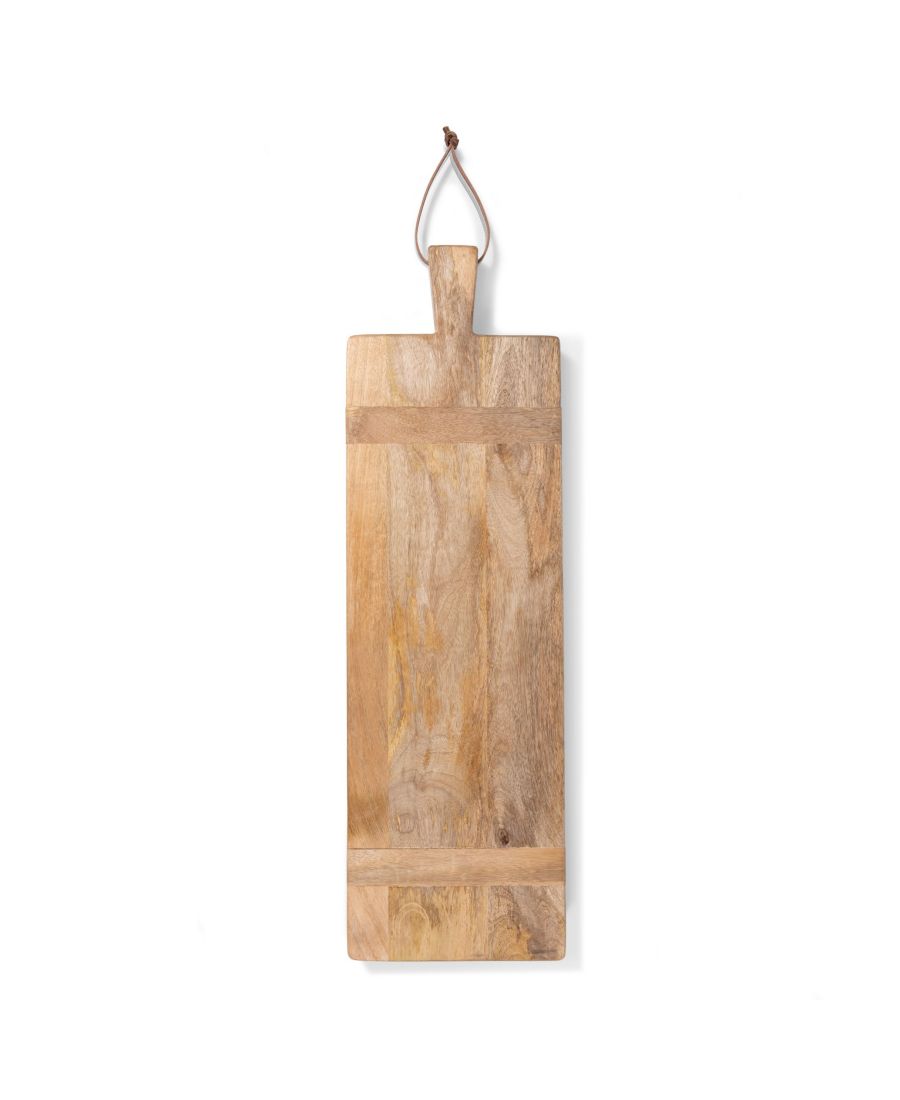 Размеры сервировочной доски: 29 дюймов в длину, 9 дюймов в ширину и 1 дюйм в высоту. Вес изделия: 4,8 фунта. Изготовлена из древесины манго. Контрастные полосы из древесины с одной стороны. Кожаная веревка на ручке для подвешивания. Дерево. Поверхность следует мыть только влажной тканью, чтобы предотвратить деформацию и растрескивание древесины. Не погружайте в воду. Импортный товар.
