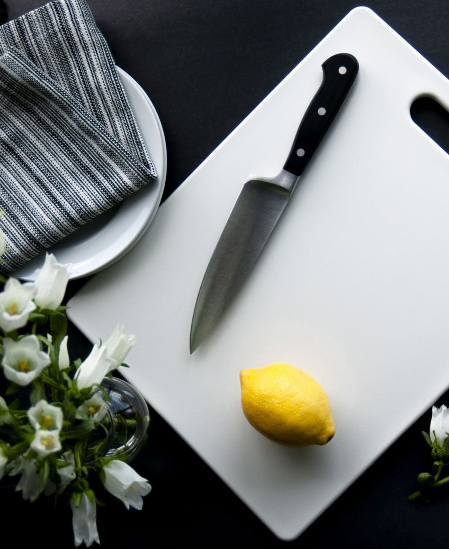 Оригинальная разделочная доска Architec с противоскользящим основанием оснащена запатентованной системой фиксации. Доска надежно держится на столешнице во время нарезки, а материал, пригодный для контакта с пищевыми продуктами, не затупляет лезвия.