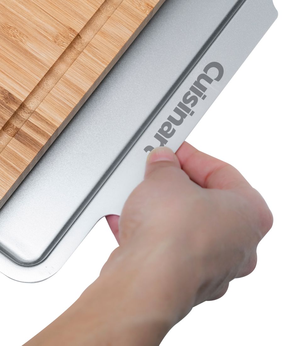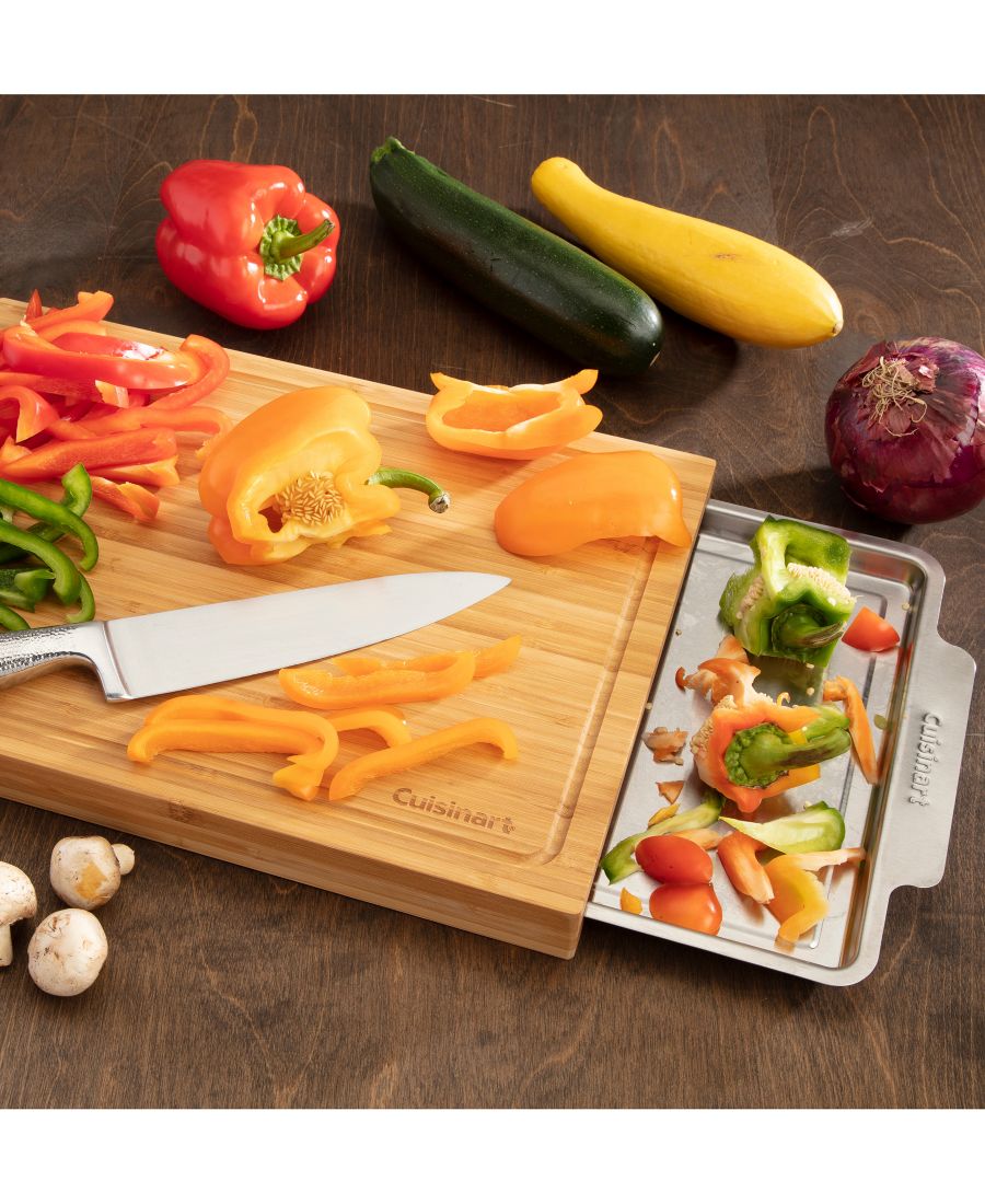 На этой разделочной доске Cuisinart вы сможете готовить, нарезать или подавать блюда. Бамбуковая столешница отличается функциональным дизайном, а выдвижной поддон из нержавеющей стали идеально подходит для сбора пищевых отходов.