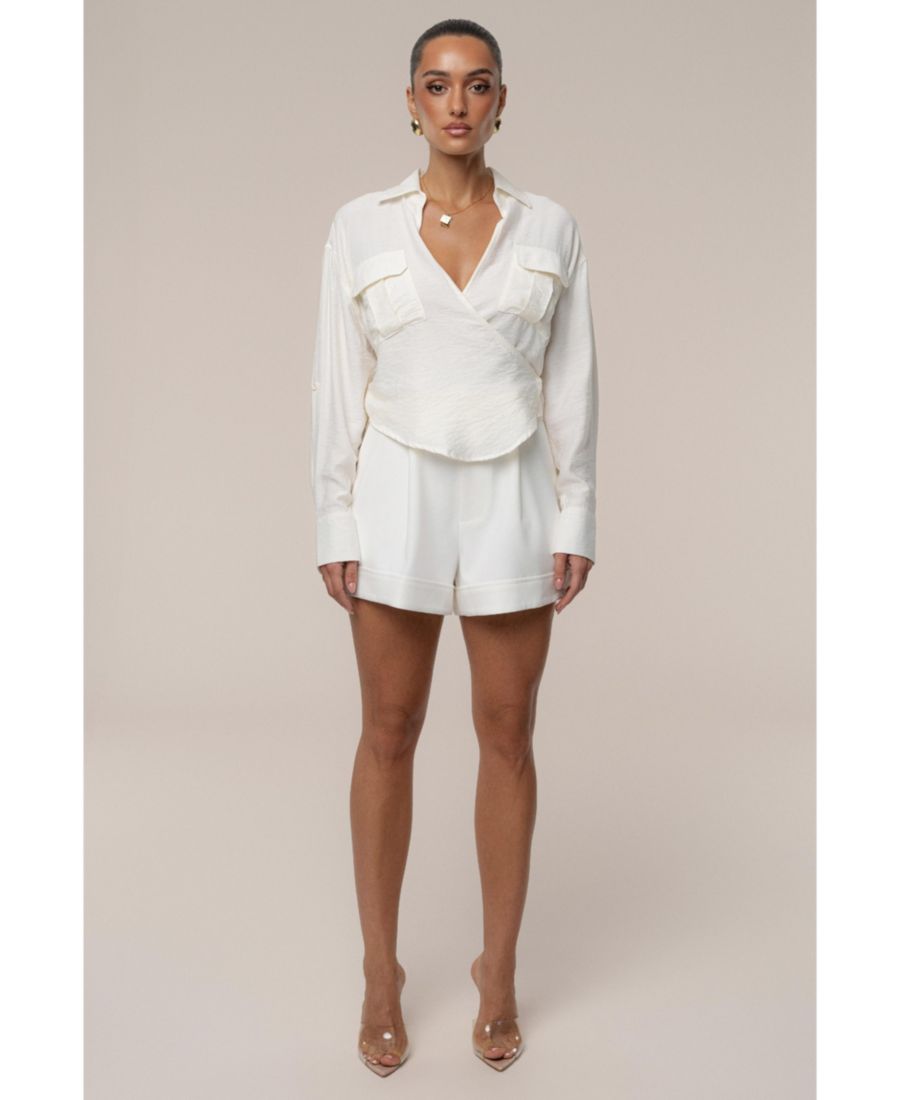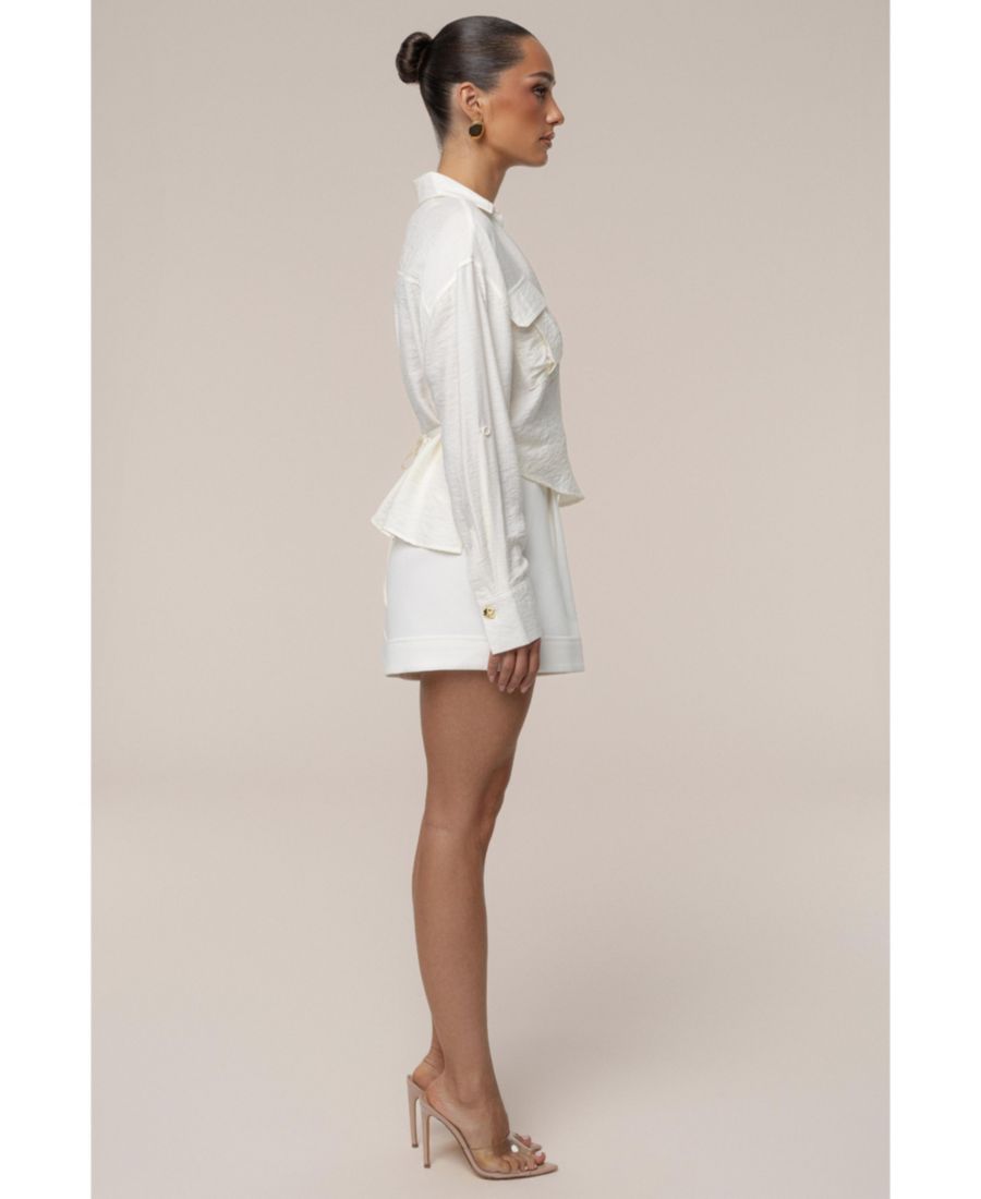 Женская рубашка-карго с воротником-стойкой JLUXLABEL, Ivory