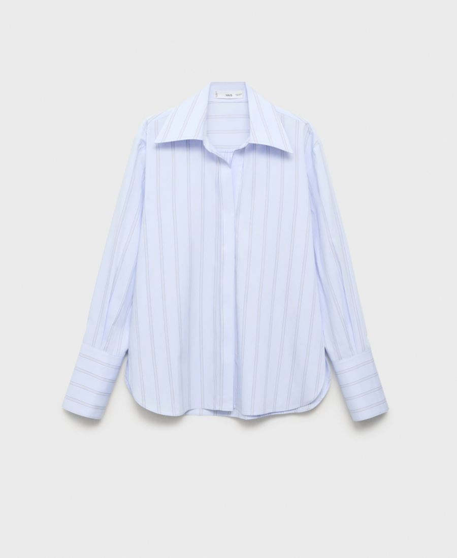 Женская полосатая рубашка с лацканами MANGO, Sky Blue