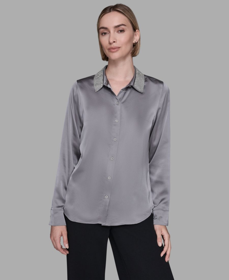 Женская рубашка с воротником KARL LAGERFELD PARIS, Ultimate Gray