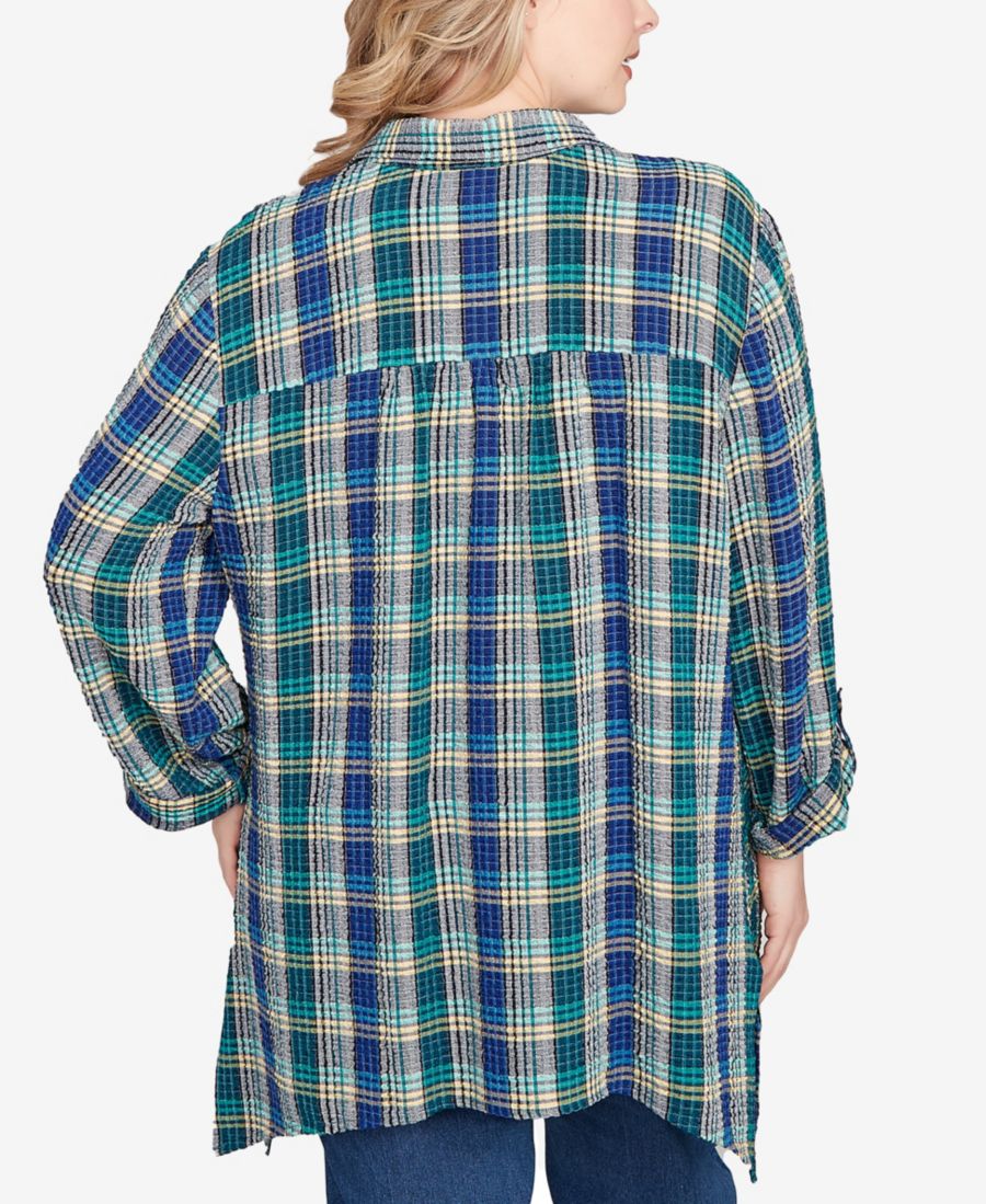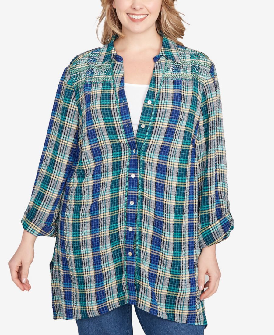 Рубашка в клетку большого размера с вышивкой и пуговицами Ruby Rd, Teal Multi