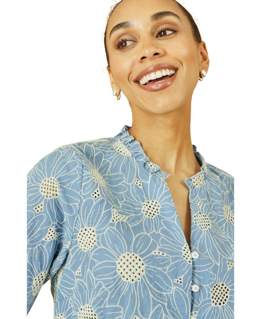 Женская рубашка с вышивкой "Маргаритка" Yumi, Blue