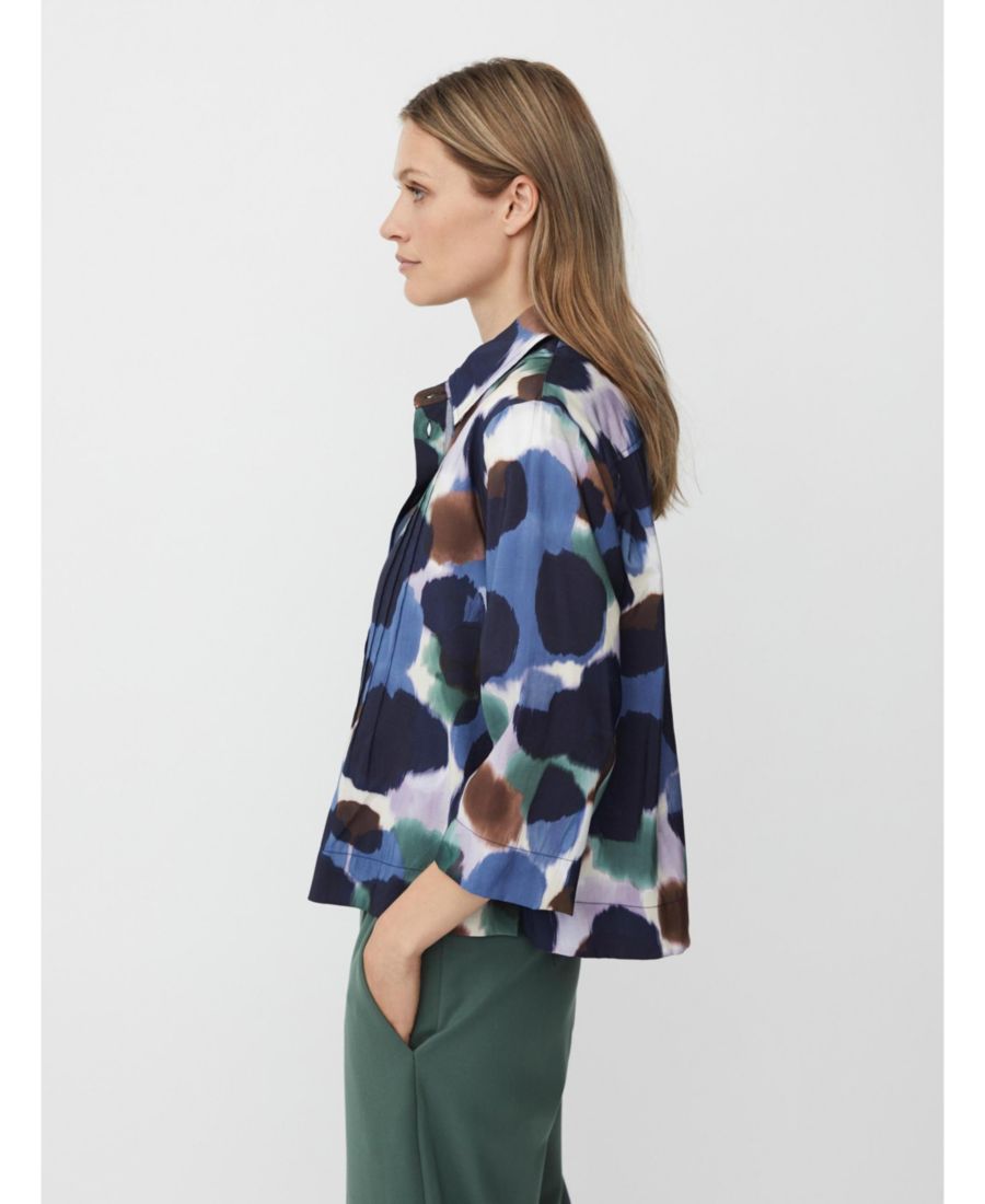 Дополните свой образ этой потрясающей рубашкой с красочным принтом в стиле батик. Она имеет короткий свободный крой, декоративную строчку спереди и короткие разрезы по бокам - и прекрасно подойдет в качестве легкой куртки.
