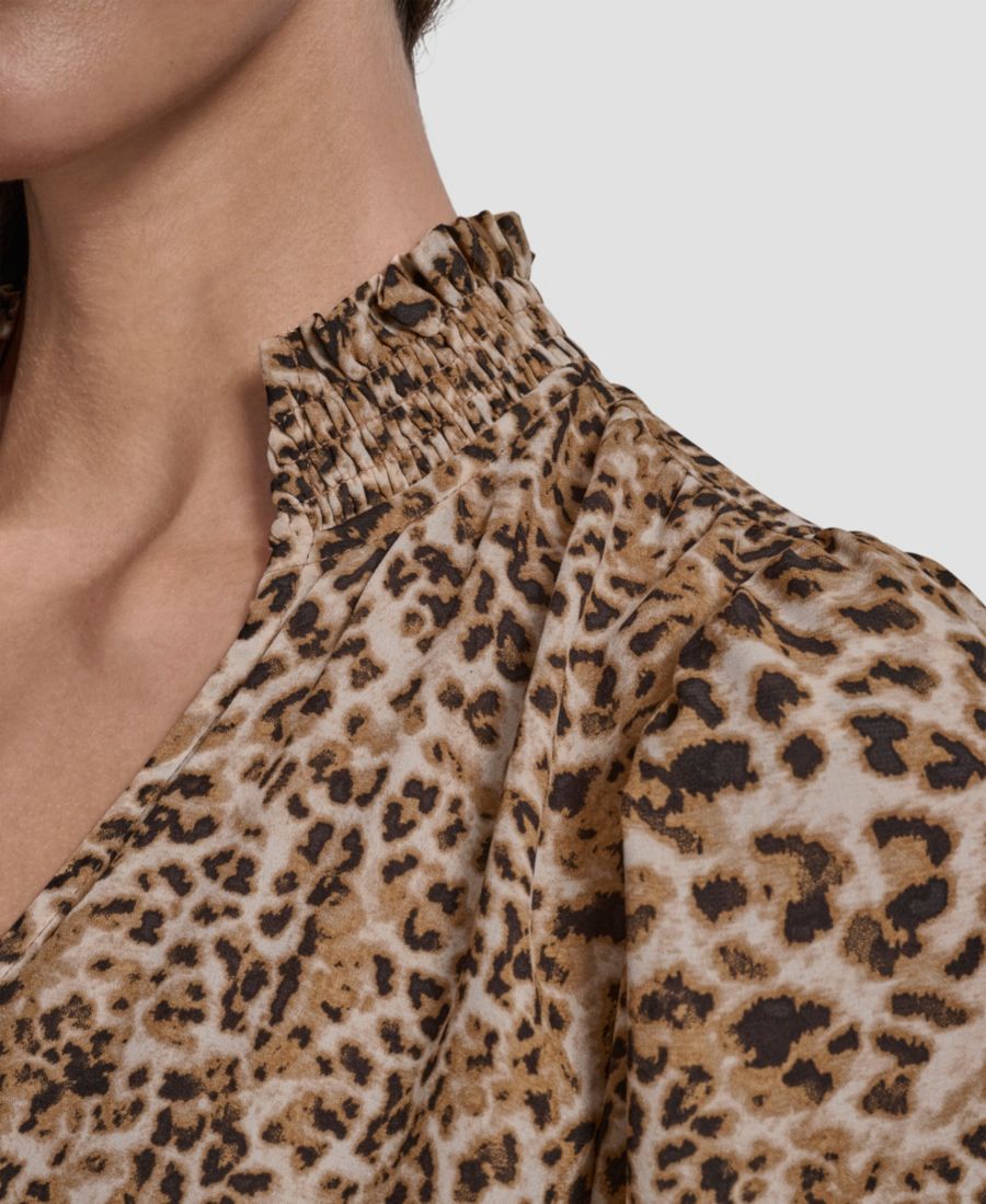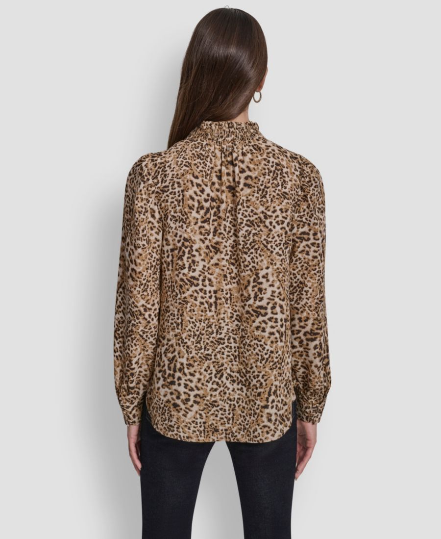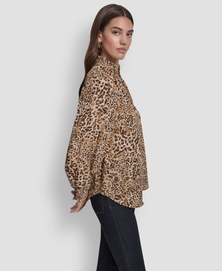 Женская рубашка с присборенным воротником DKNY Jeans, Shadow Leopard Whiskey