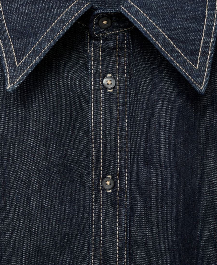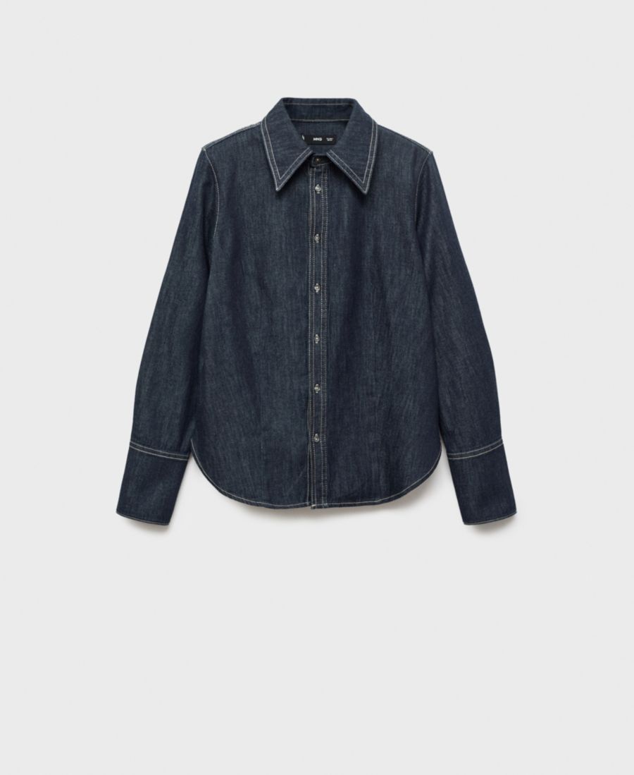 В джинсовой рубашке со швами от Mango непринужденный стиль сочетается с практичностью. Изготовленная из хлопчатобумажной ткани, имитирующей деним, эта рубашка имеет прямой крой, воротник и длинные рукава.