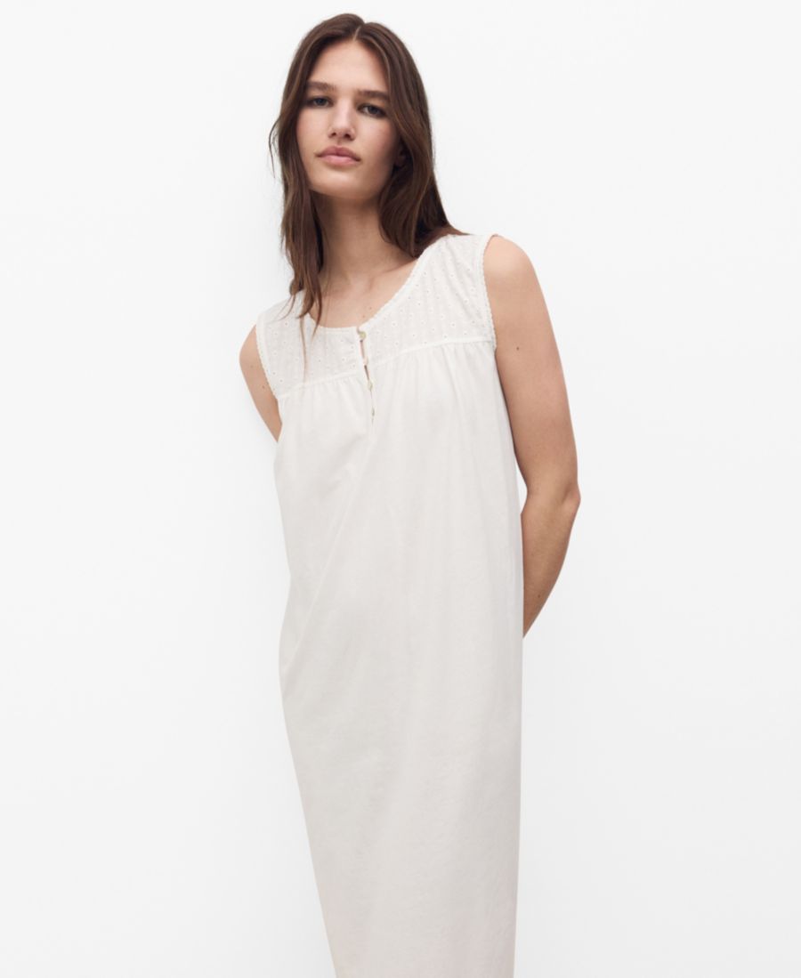 Женская хлопковая ночная рубашка с вышивкой MANGO, White