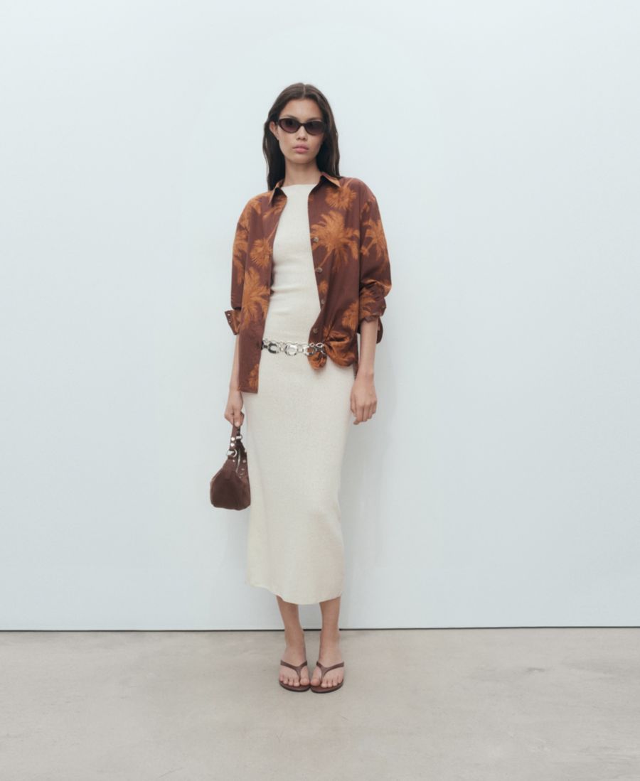 Женская хлопковая рубашка с принтом пальм MANGO, Brown 7 097₽