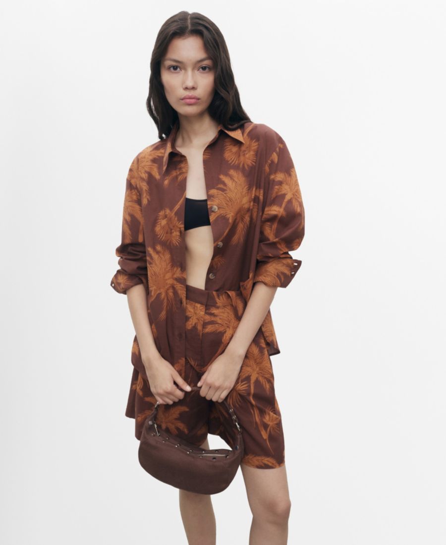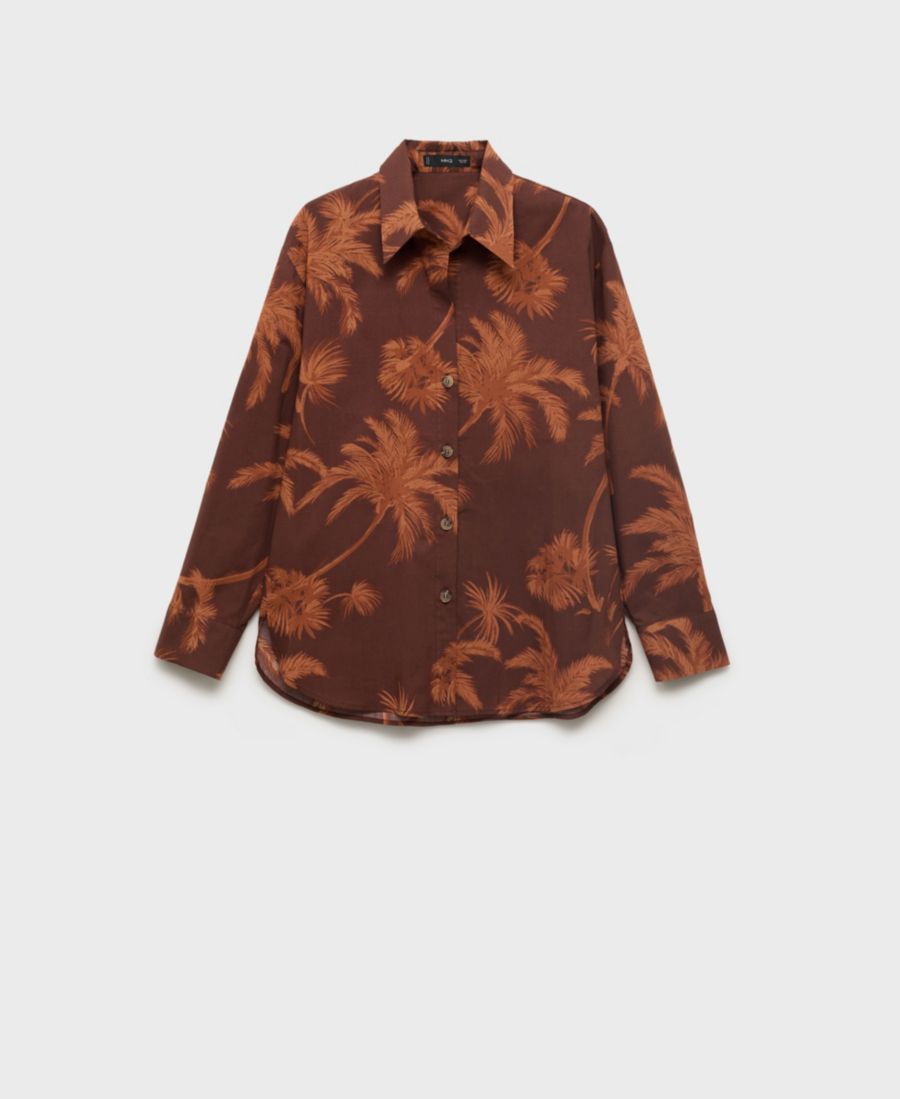Женская хлопковая рубашка с принтом пальм MANGO, Brown
