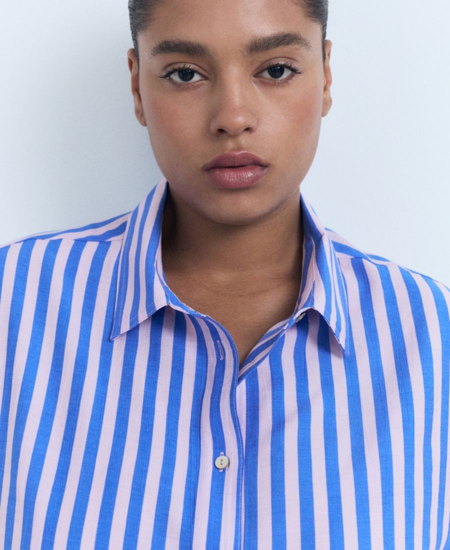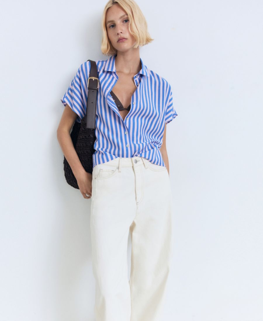 В полосатой рубашке с коротким рукавом от Mango сочетаются принты и движение. Эта рубашка имеет прямой крой.