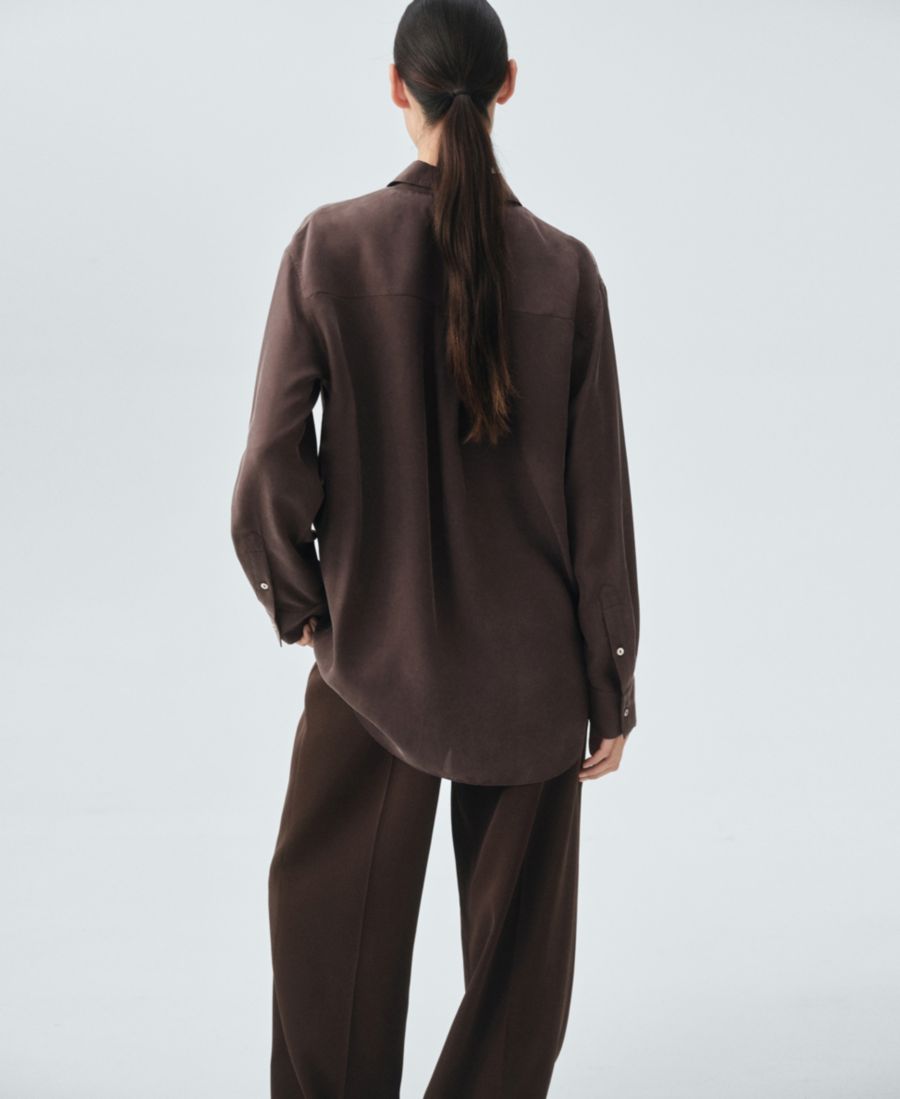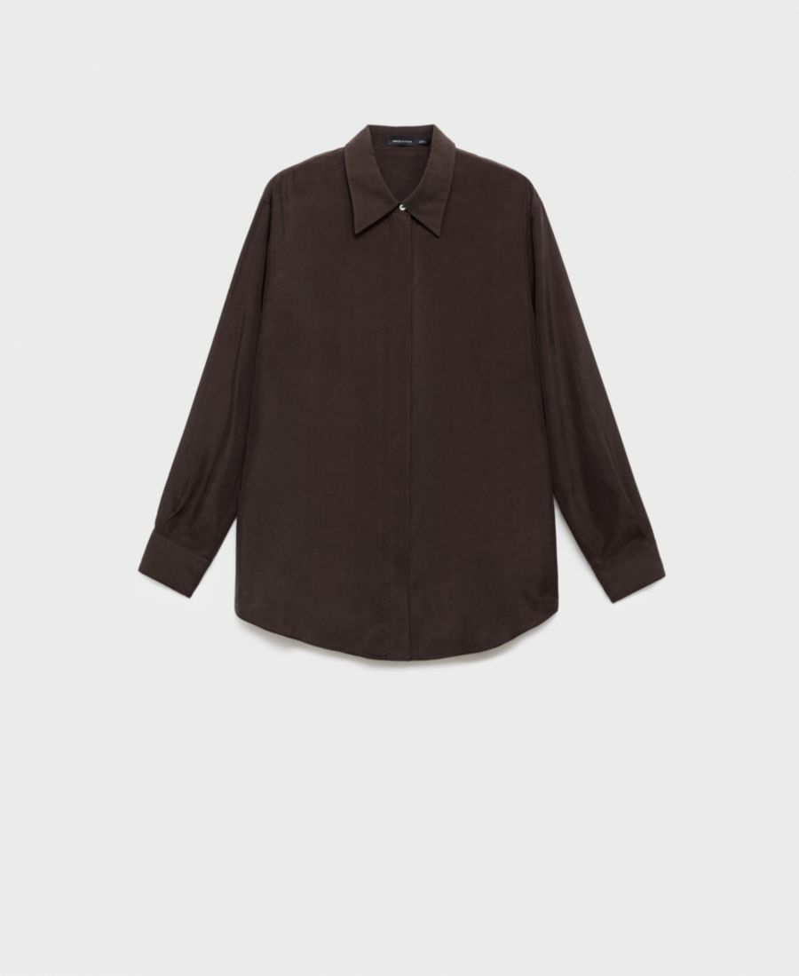 Женская шелковая рубашка оверсайз MANGO, Chocolate