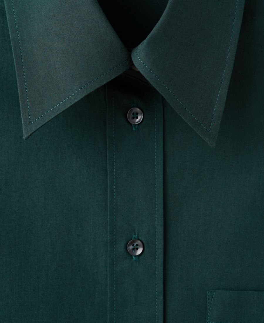 Воротник рубашки; застежка на пуговицы спереди.