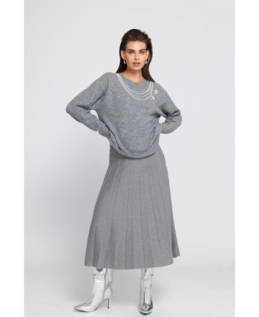Этот мягкий вязаный свитер украшен элегантными искусственными жемчужинами вдоль выреза горловины, мгновенно придавая образу изысканность. Свободный крой обеспечивает комфорт, при этом свитер хорошо сидит и подчеркивает фигуру, а ребристая отделка воротника, низа и манжет помогает сохранить форму со временем. Легкий, но уютный, он идеально подходит для многослойной одежды в переходную погоду и на каждый день. Благодаря эластичной ткани, обеспечивающей свободу движений, свитер выглядит безупречно, а нежные цветочные акценты добавляют игривого очарования любому образу.