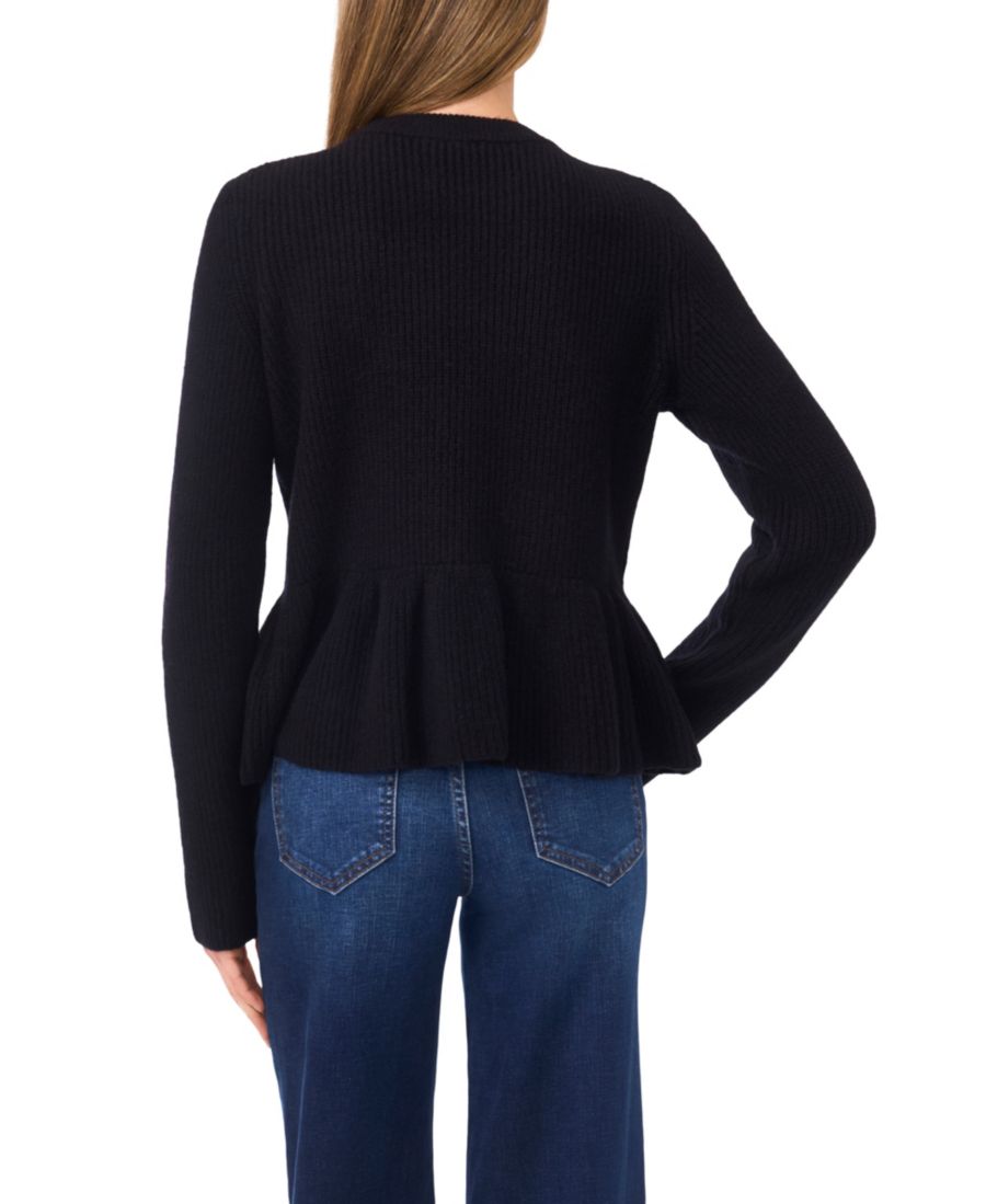 Женский свитер с баской и длинными рукавами CeCe, Rich Black