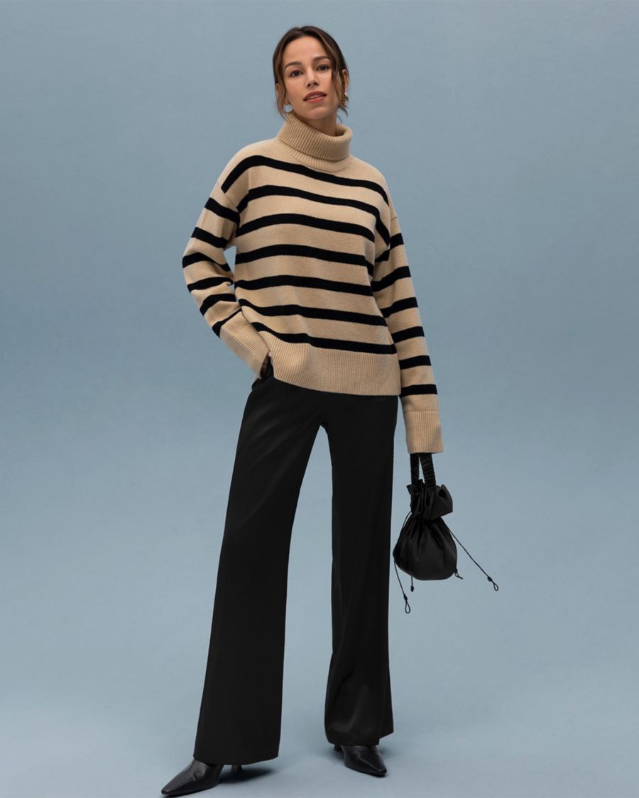 Женский полосатый свитер Gilly LILYSILK, Black&toffee stripes