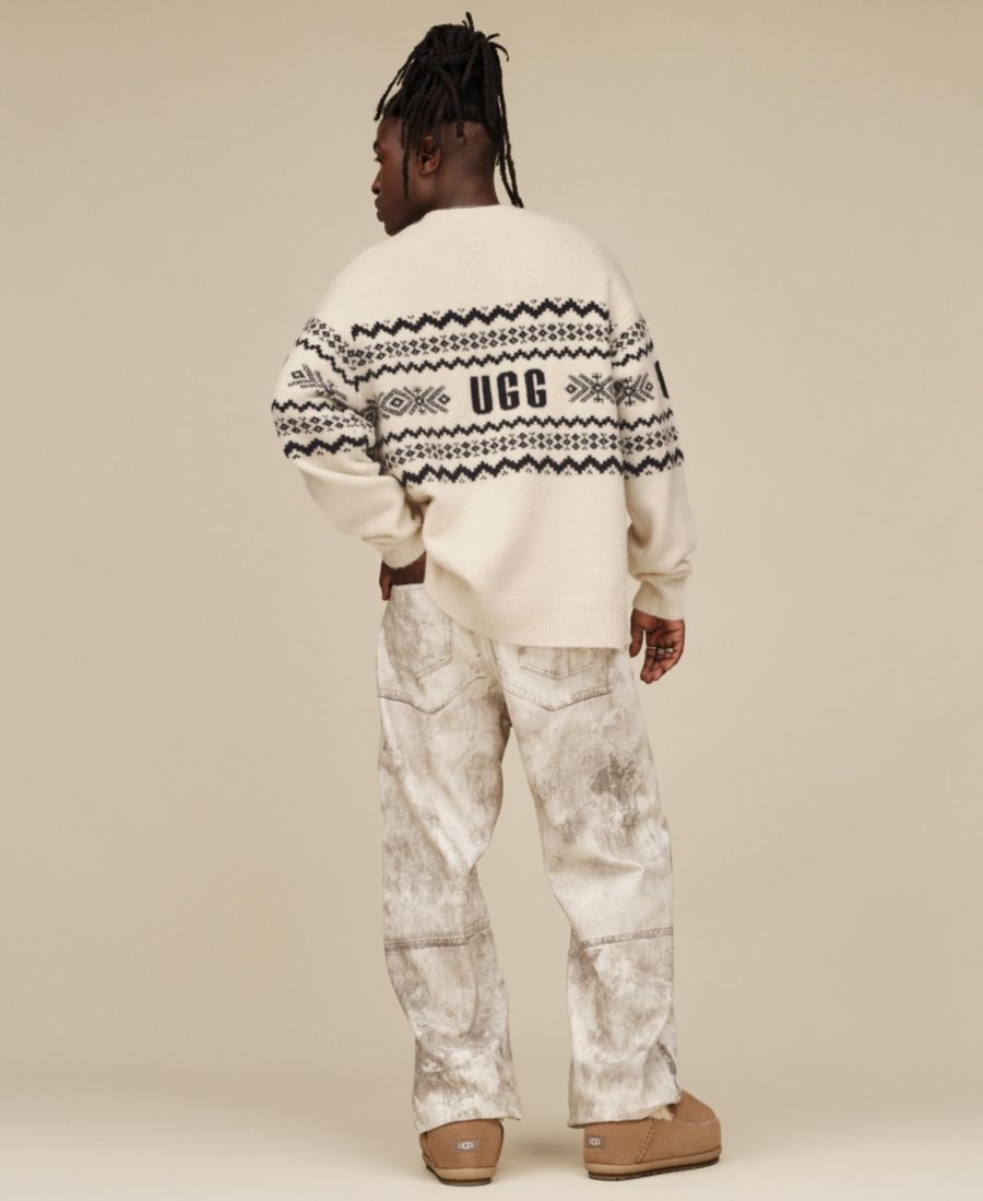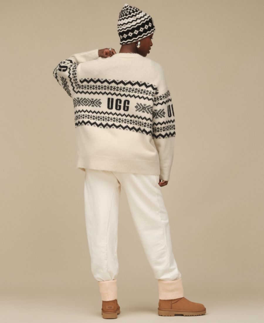 Насладитесь уютным стилем с этим вязаным свитером UGG Kaelan, украшенным праздничным узором Fair Isle, который добавит игривости вашему сезонному гардеробу. Ребристая отделка на воротнике, манжетах и подоле обеспечит элегантный вид. Графический шрифт по центру груди - это фирменный знак бренда.
