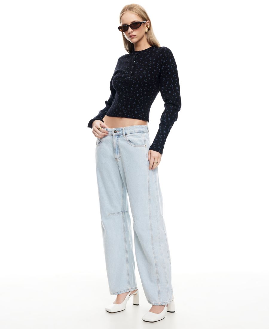 Этот свитер-футляр от Lioness отличается легким мерцанием, эффектной отделкой пуговицами спереди и сказочным дизайном Голова в облаках. Его лаконичный силуэт создан для комфортной и элегантной носки. Стильный элемент гардероба, сочетающий мягкость и модный шарм.