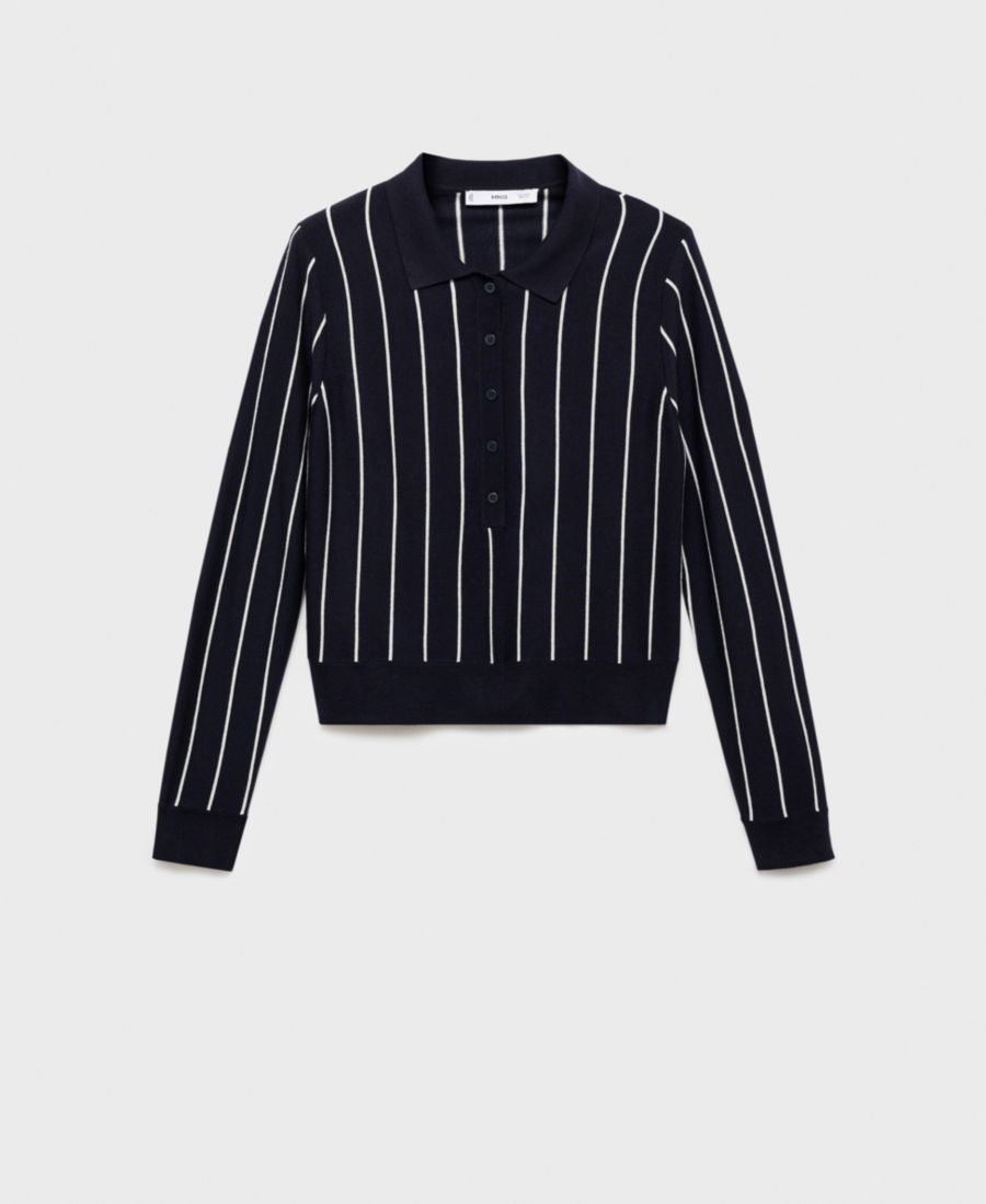 Женский полосатый свитер с высоким воротником-поло MANGO, Navy