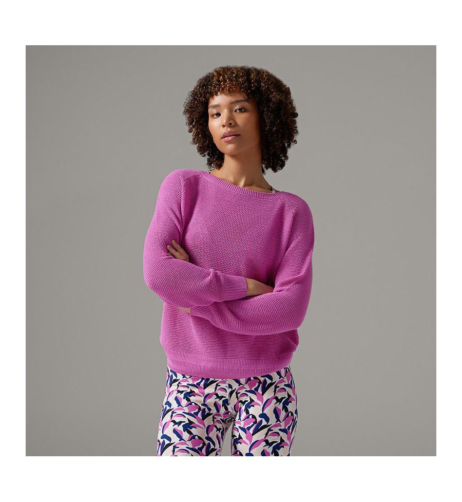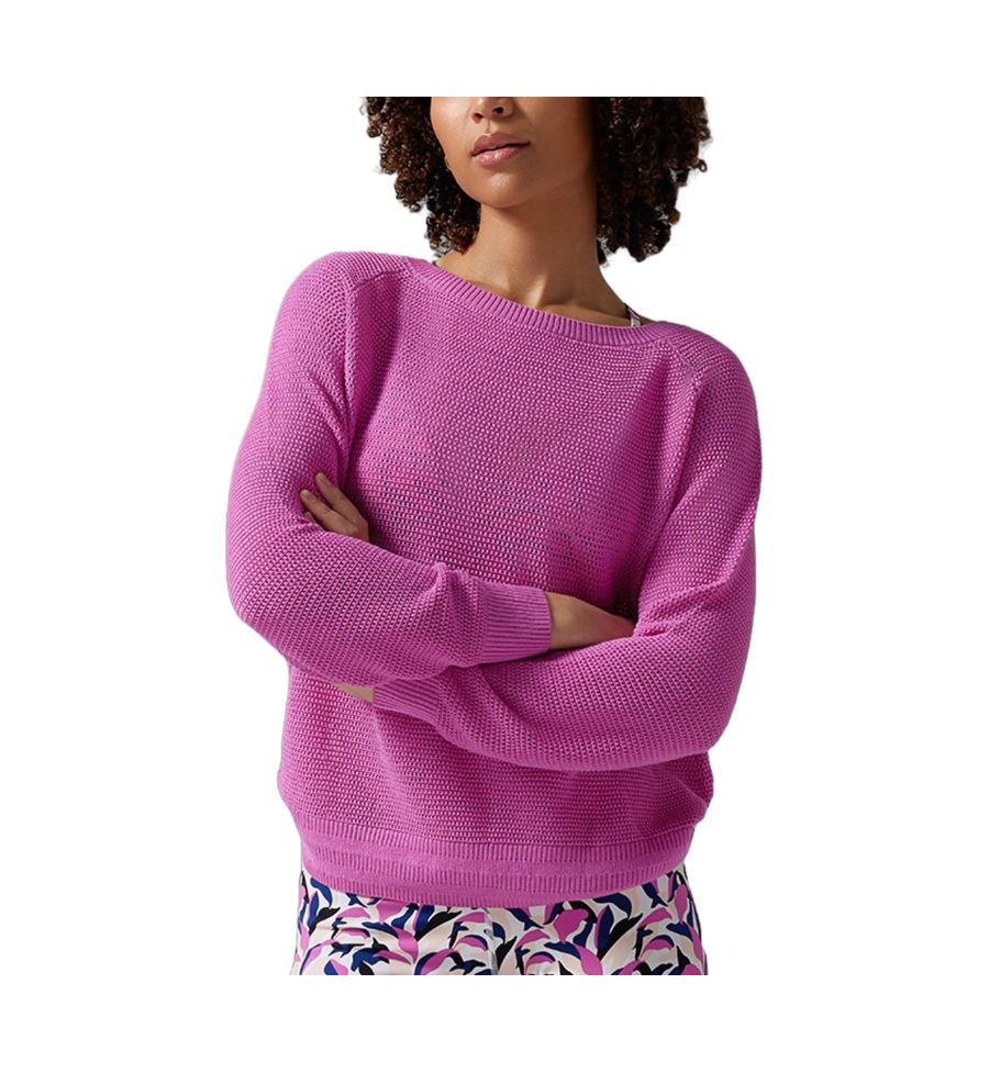 Свитер West Coast из мягкой смесовой вискозной пряжи дарит ощущение непринужденной роскоши. Благодаря ажурной сетчатой вязке, рукавам реглан и ребристой отделке, этот легкий и стильный свитер привнесет калифорнийский шик в ваш активный образ жизни.