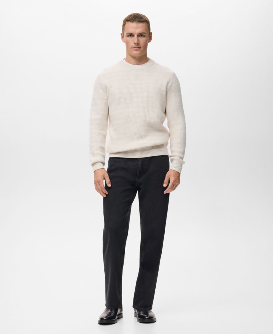 Мужской структурированный вязаный свитер MANGO, Off White