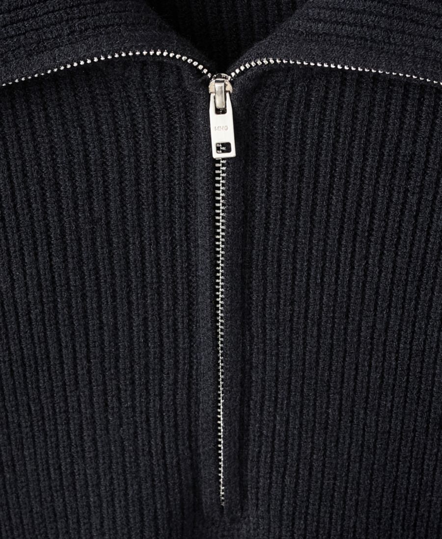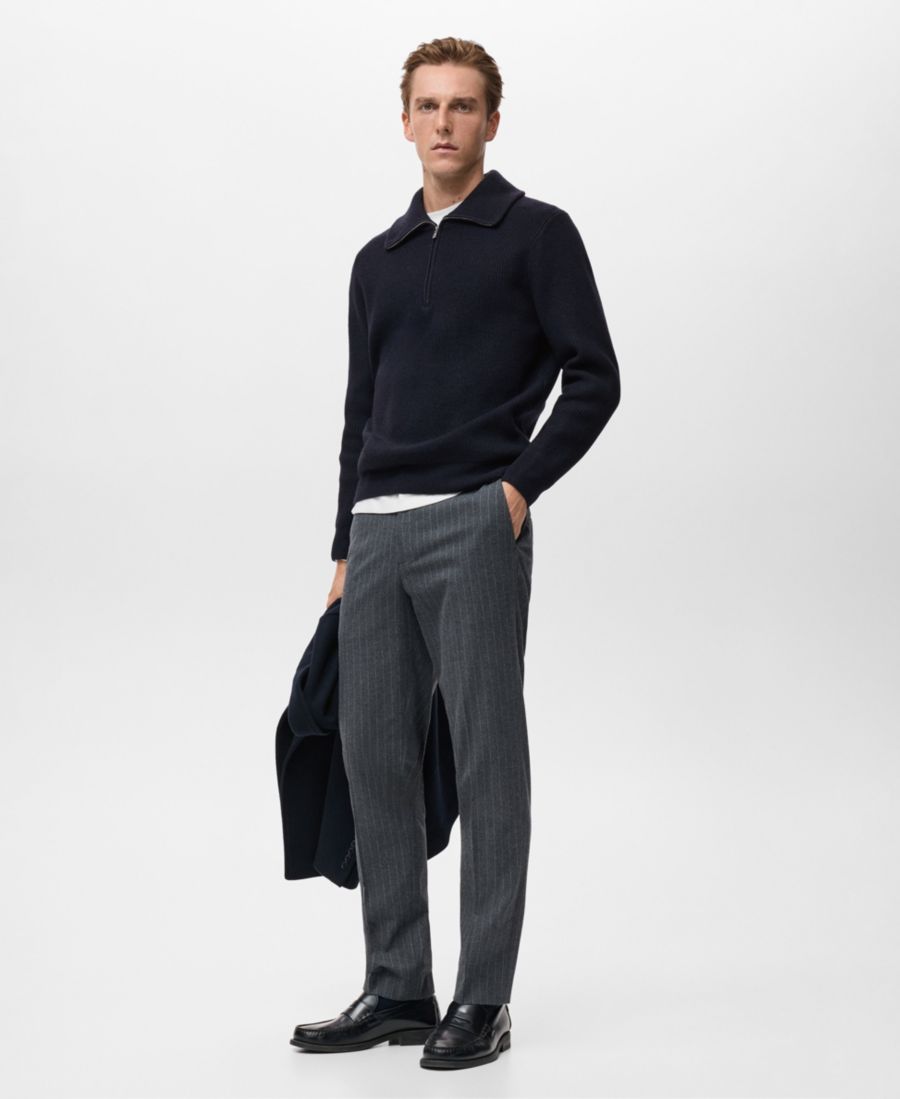 Мужской вязаный свитер с воротником на молнии MANGO, Navy
