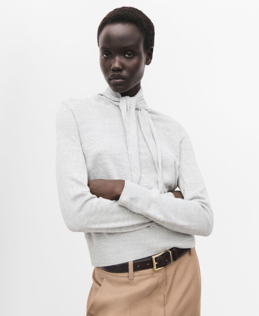 Женский свитер с высоким воротником и узлом MANGO, Gray 6 987₽