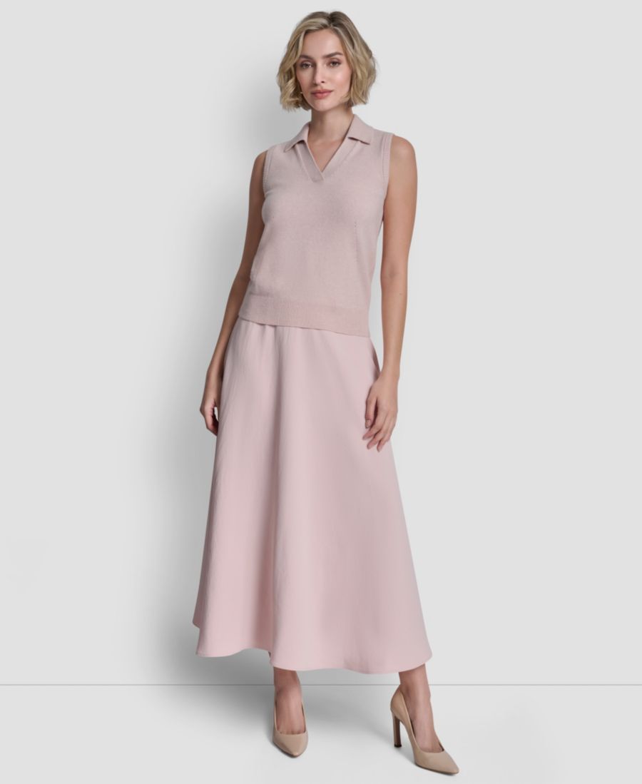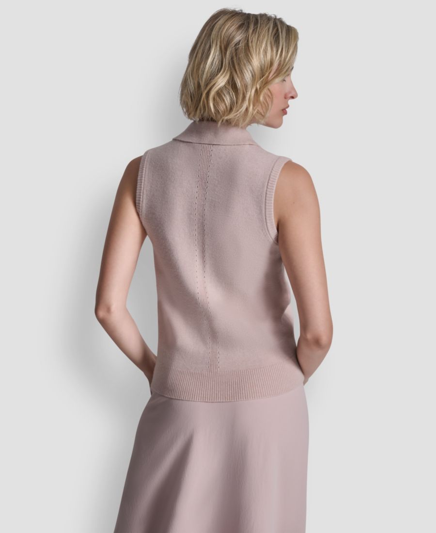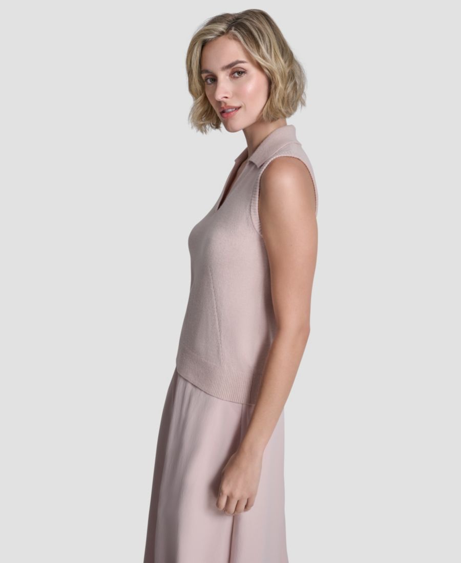 Простой и универсальный свитер с V-образным вырезом от DKNY имеет дизайн без рукавов, что позволяет легко создавать многослойные образы. Модель без застежек и длина до бедра обеспечивают комфорт и элегантный вид.