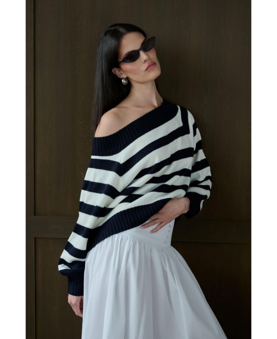 Женский свитер с открытыми плечами WeWoreWhat, Navy/white