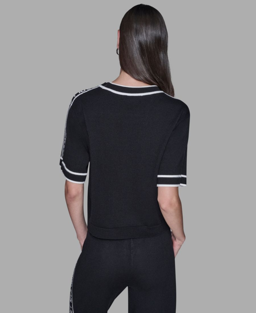 Этот свитер KARL LAGERFELD PARIS с короткими рукавами, круглым вырезом и заметным логотипом. Удобный фасон и длина до бедра делают его идеальным вариантом для многослойной одежды в теплую погоду.