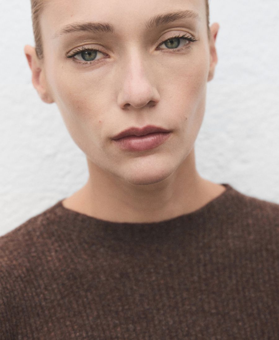 Женский ребристый свитер Perkins с воротником MANGO, Chocolate 7 374₽