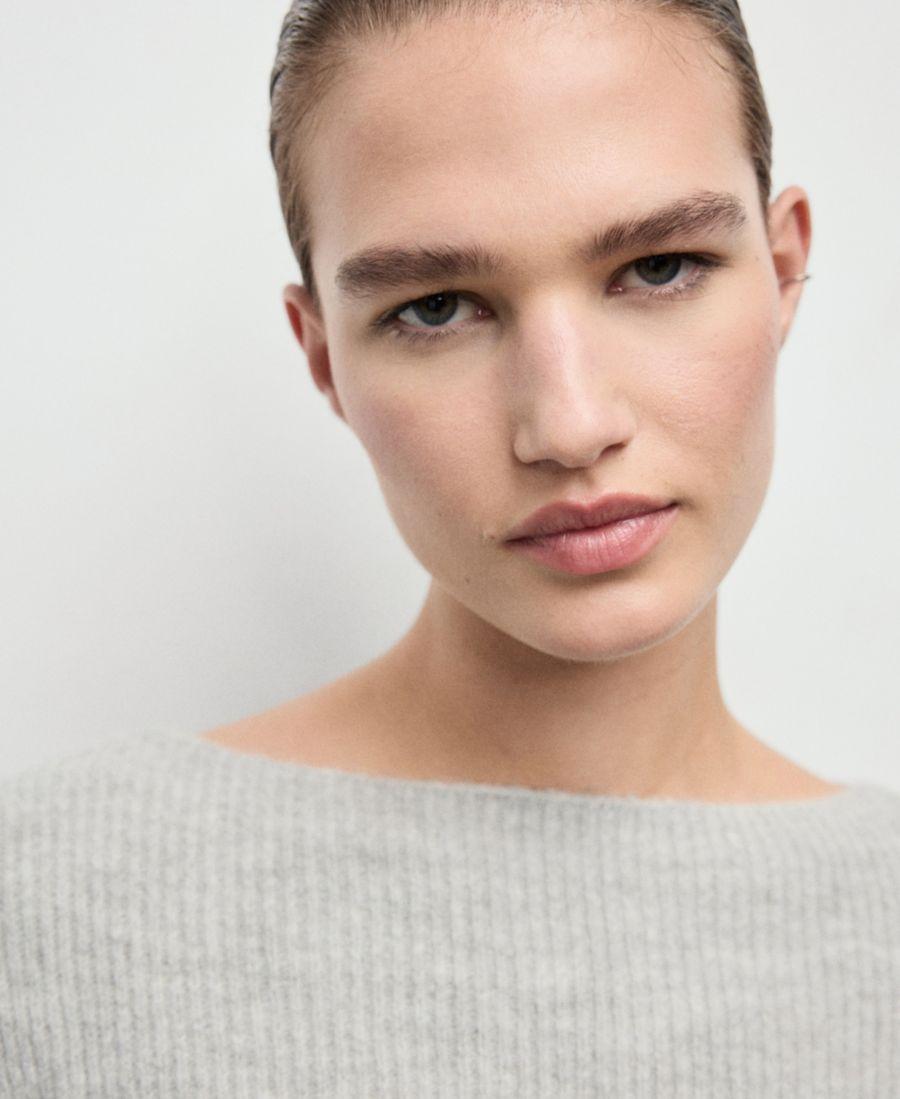 Вязаный ребристый свитер от Mango отличается лаконичной текстурой. Изготовленный из ребристой трикотажной ткани, этот свитер имеет облегающий крой, вырез-лодочку и длинные рукава.