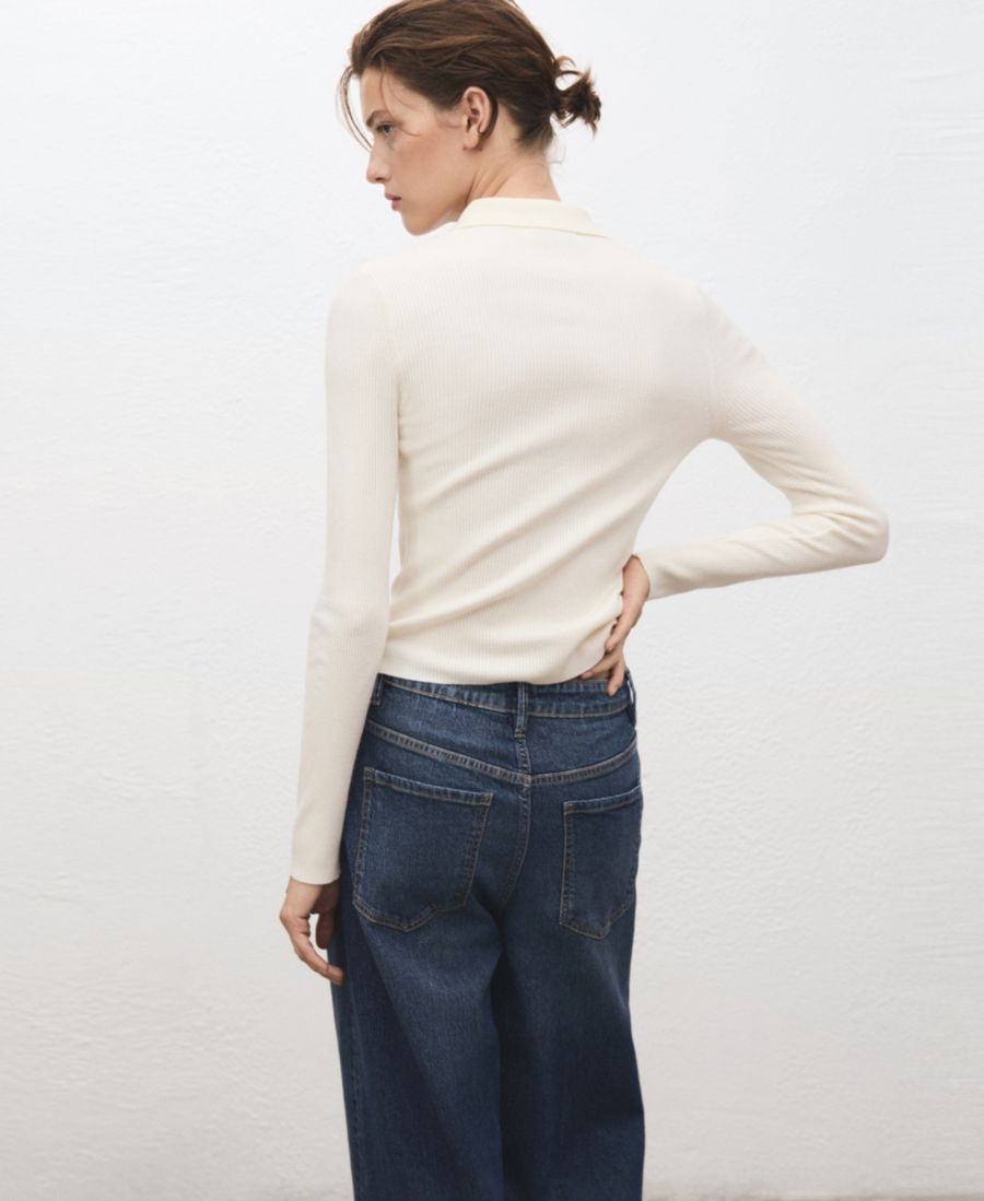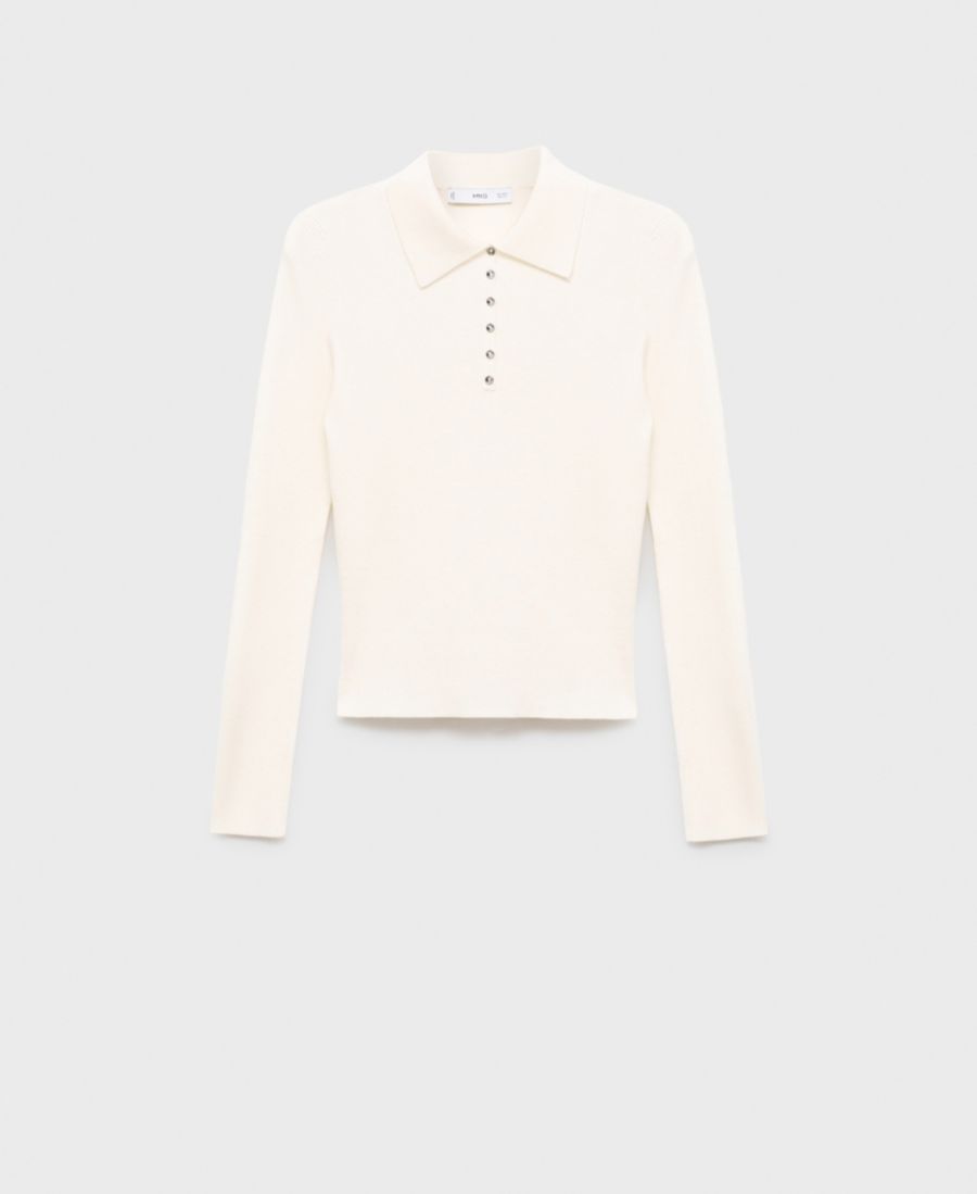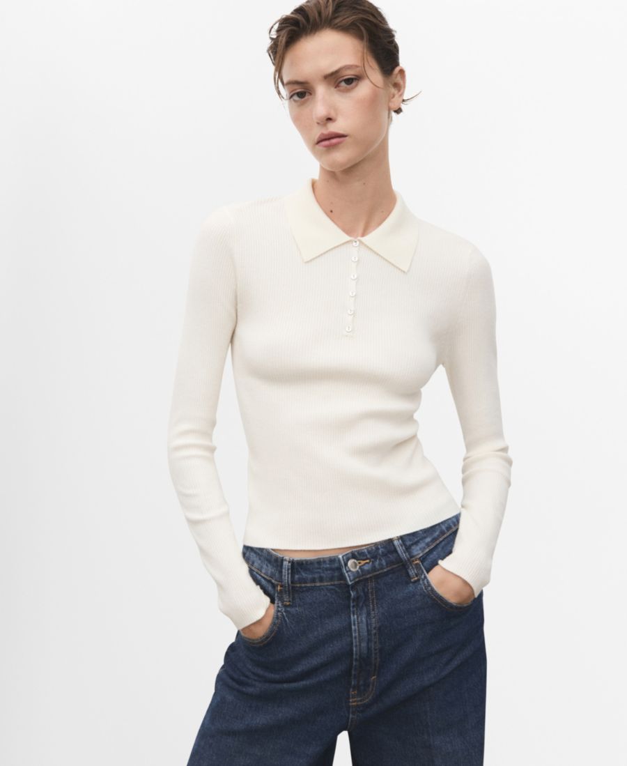 Женский ребристый свитер с воротником-поло MANGO, Ecru