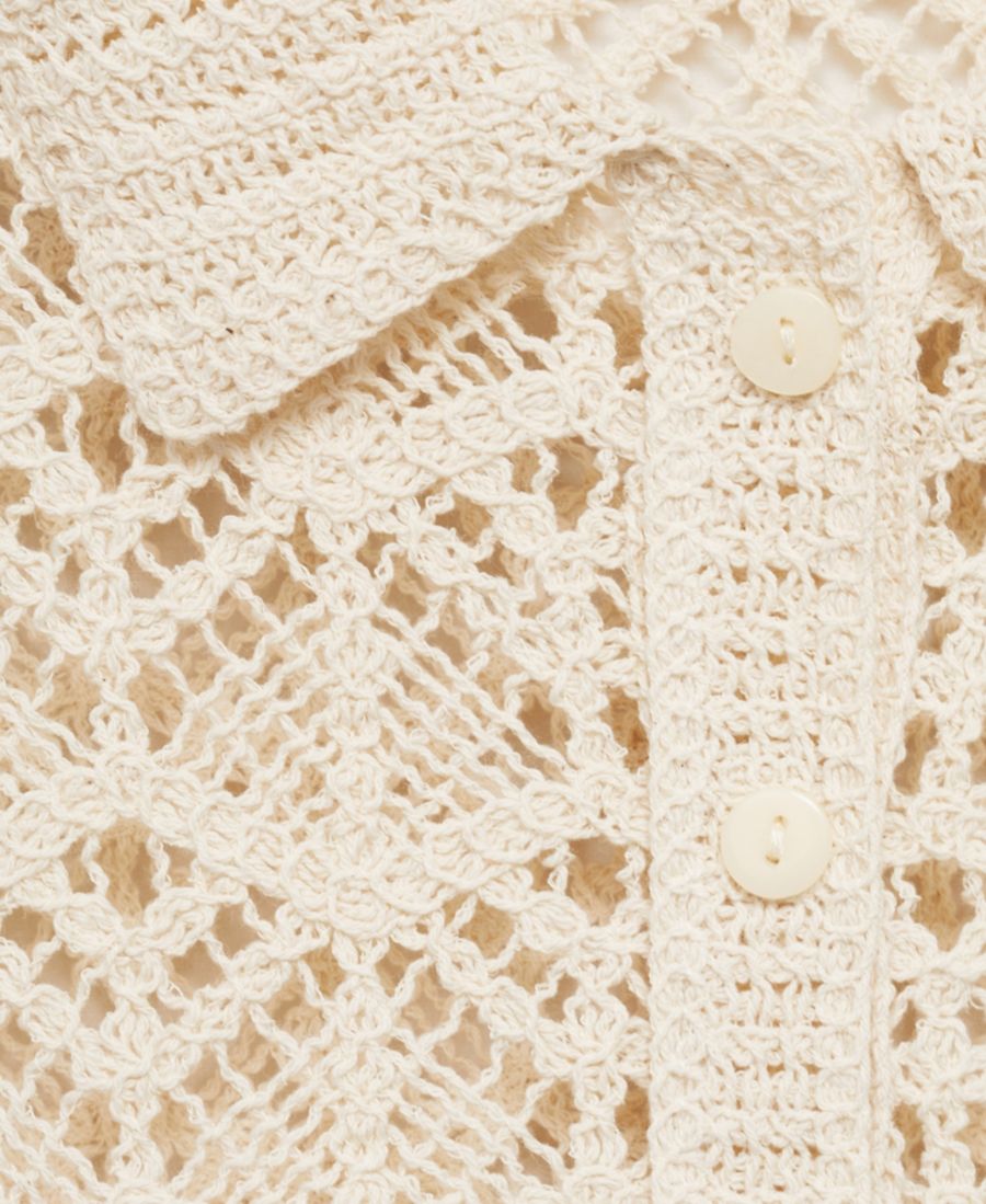 Вязаный крючком свитер с короткими рукавами от Mango отличается приятным на ощупь кроем. Этот свитер имеет прямой и вязаный узор, а также застежку на пуговицы спереди.