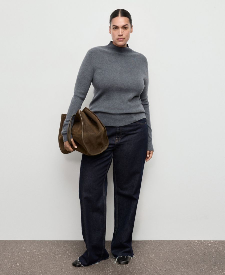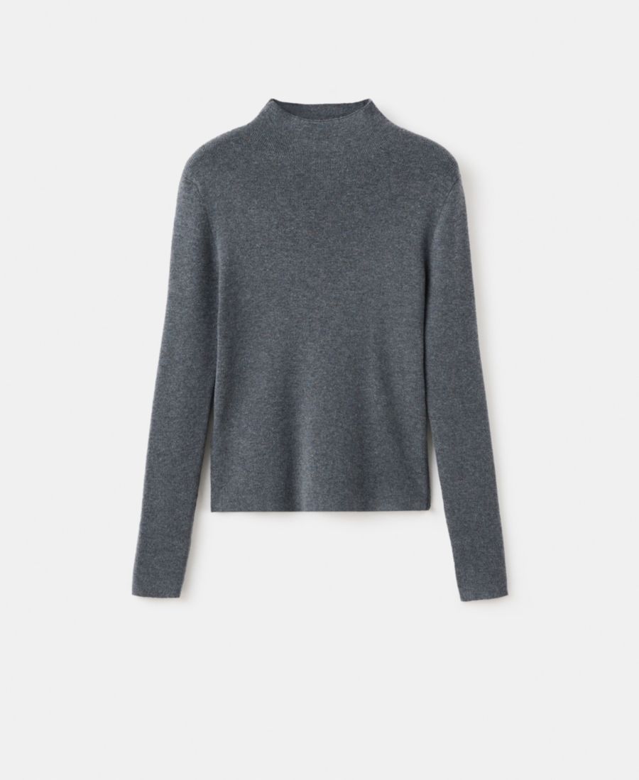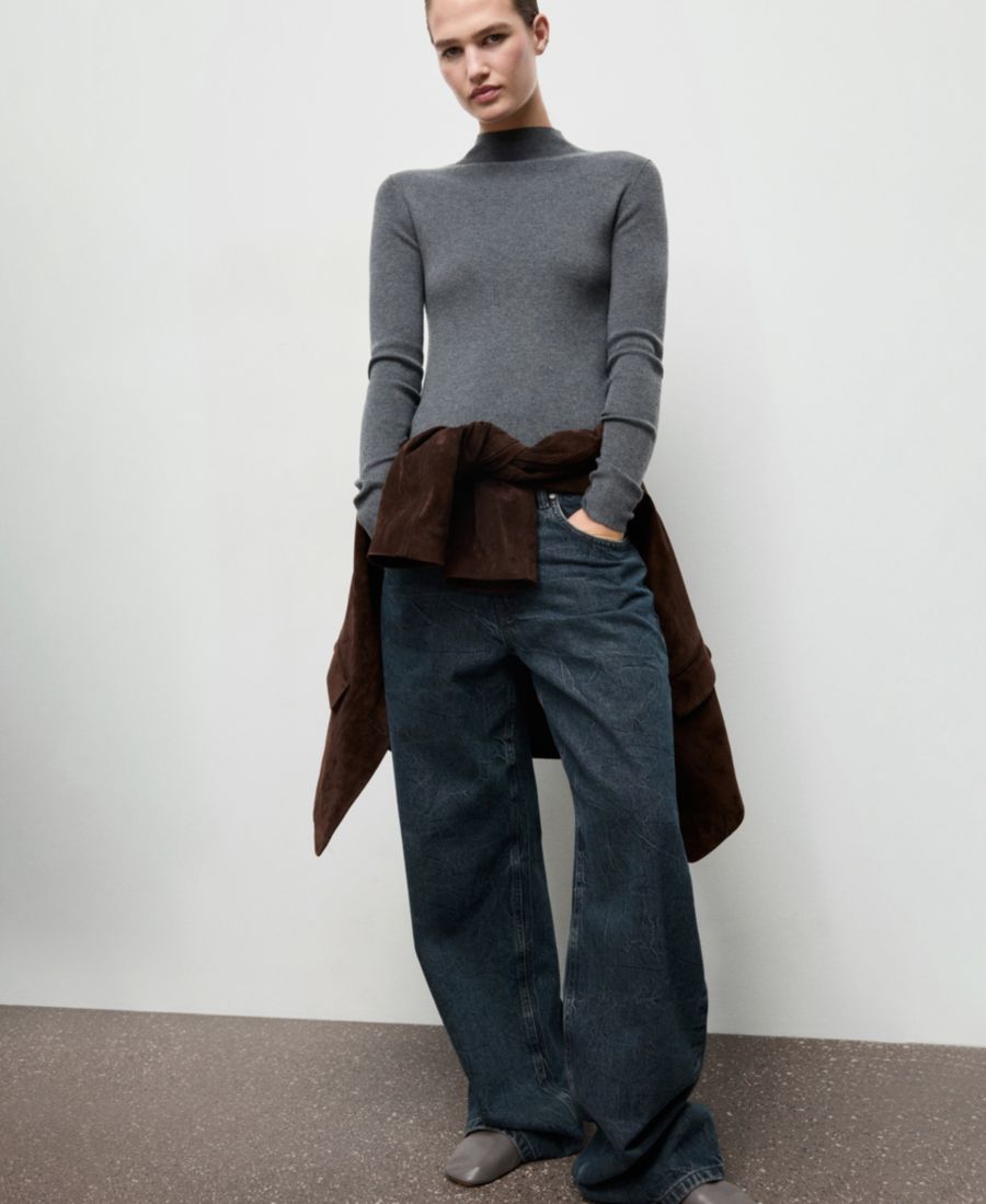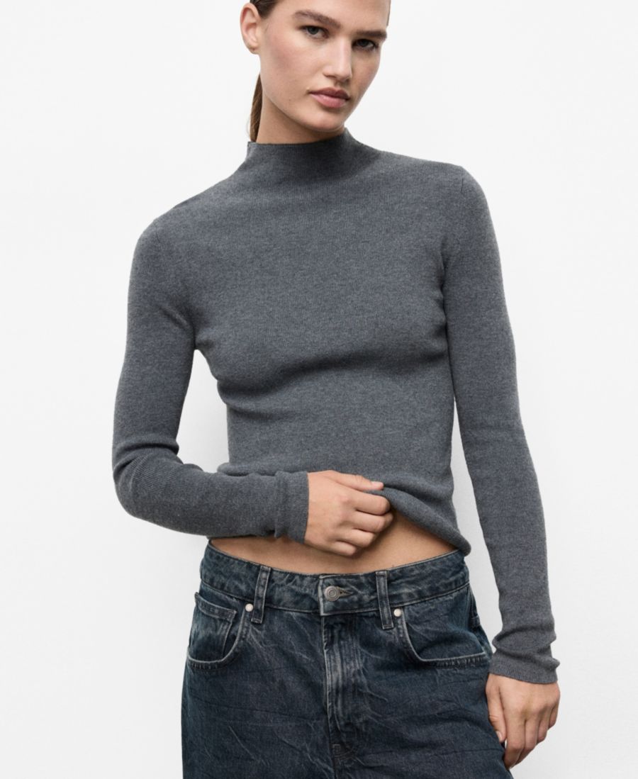 Изящные линии приталенного свитера с воротником Перкинса от Mango. Изготовленный из тонкой трикотажной ткани, этот свитер имеет высокий воротник и длинные рукава.