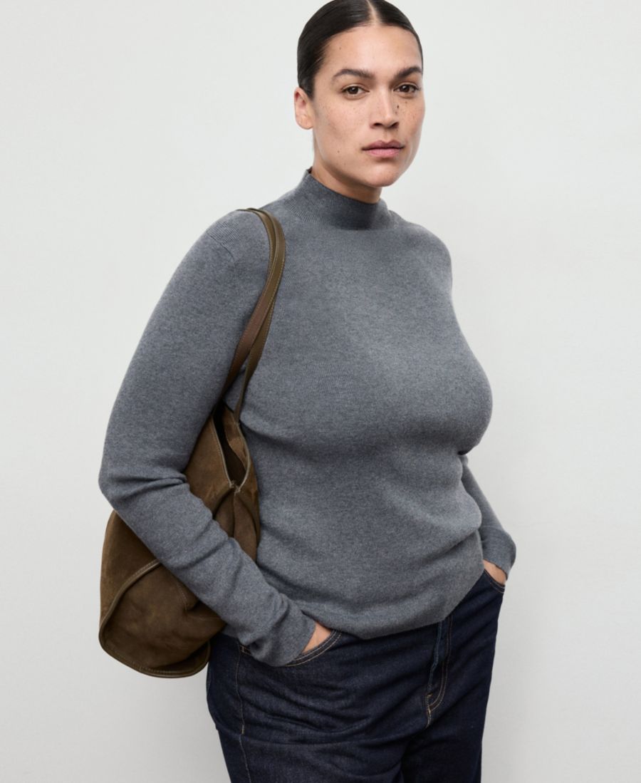 Женский облегающий свитер Perkins с вырезом горловины MANGO, Medium Heather Gray