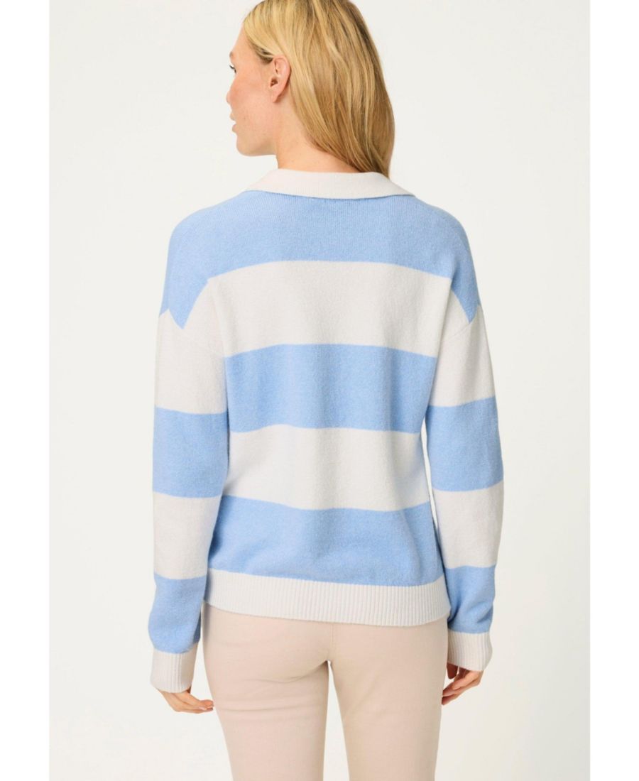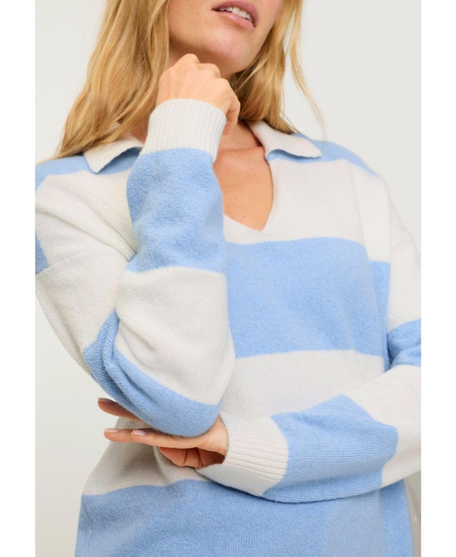 Этот пуловер с открытым воротником - свежий взгляд на морской шик: широкие полосы и свободный, современный силуэт создают ощущение непринужденной элегантности.