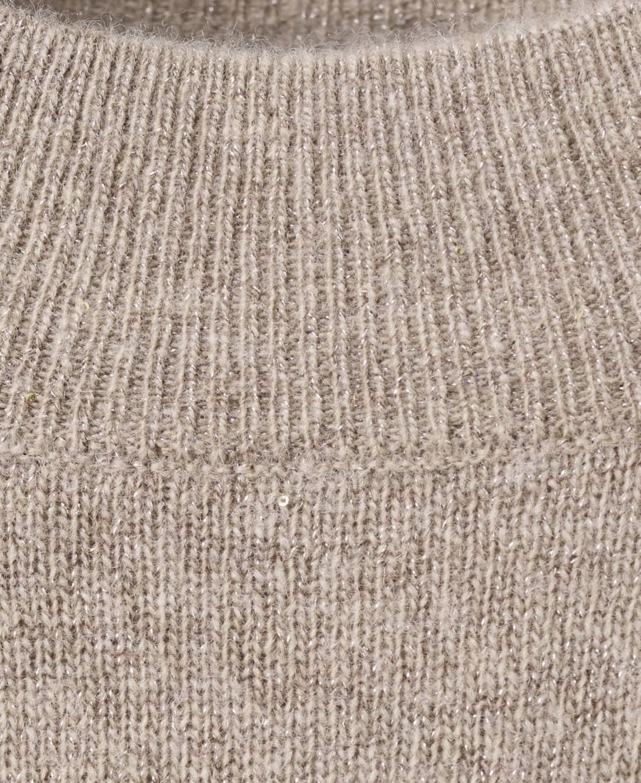 Нежный блеск отличает вязаный свитер с люрексом от Mango. Этот свитер, изготовленный из трикотажной ткани с люрексом, имеет круглый вырез и длинные рукава.