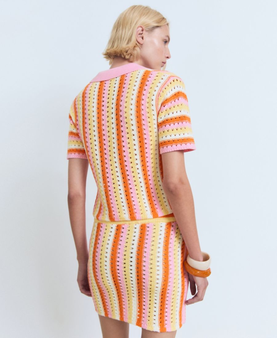Женский полосатый ажурный вязаный свитер MANGO, Pink 6 987₽