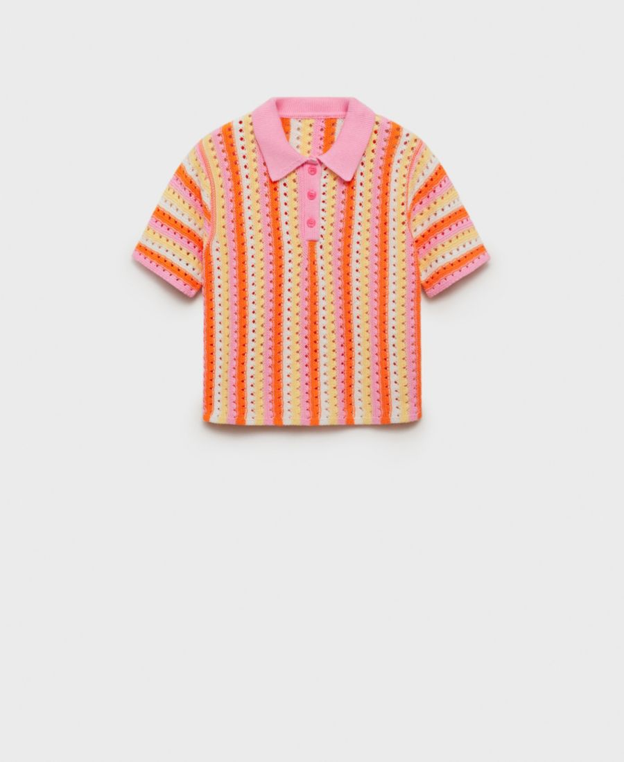 Женский полосатый ажурный вязаный свитер MANGO, Pink