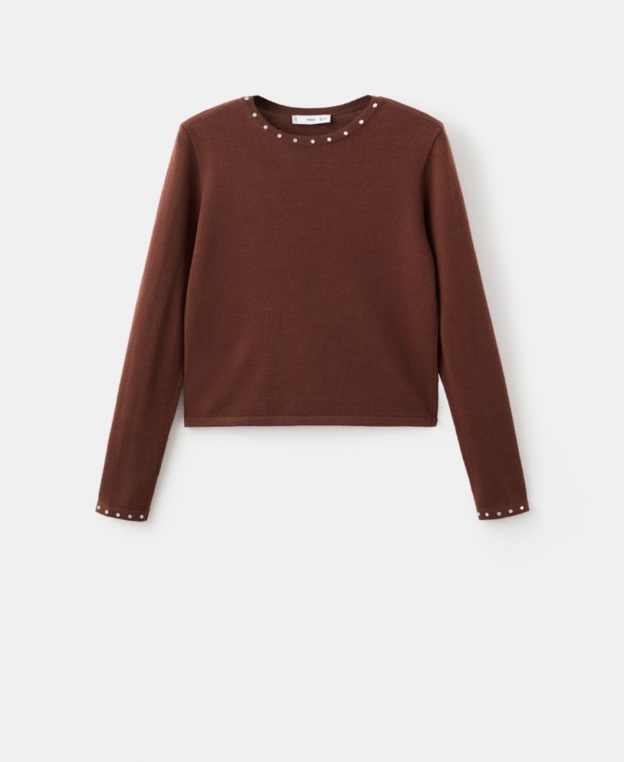 Женский вязаный свитер с заклепками MANGO, Brown