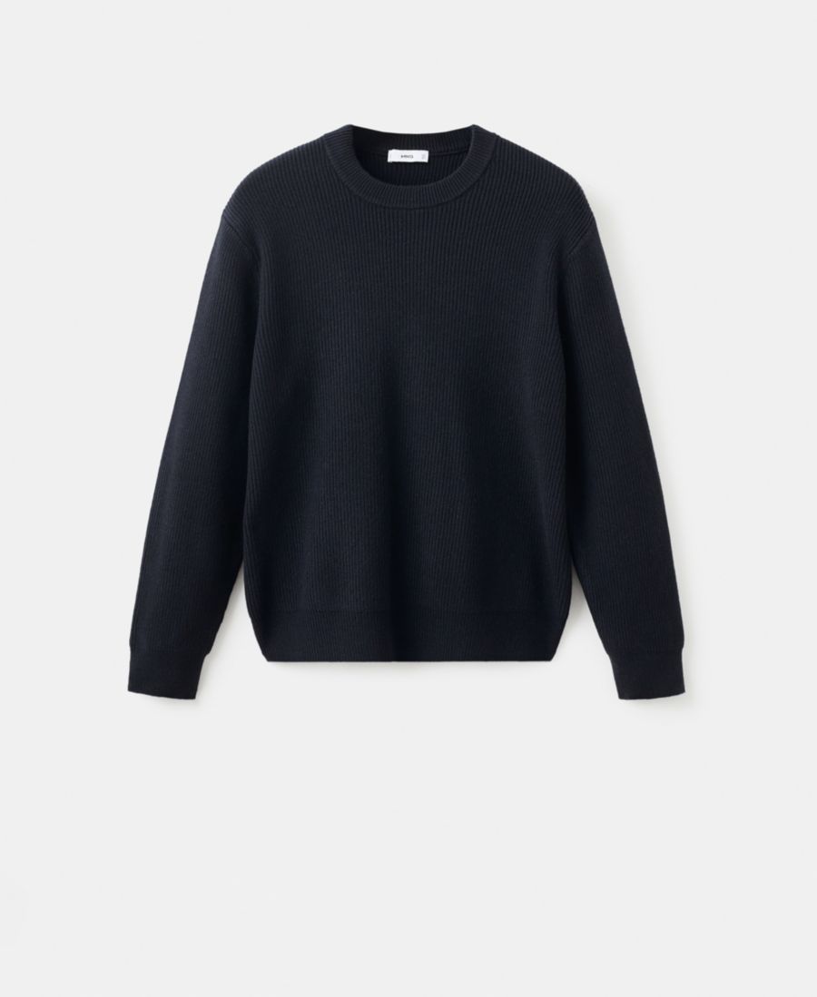 Мужской ребристый свитер из шерстяной смеси MANGO, Navy