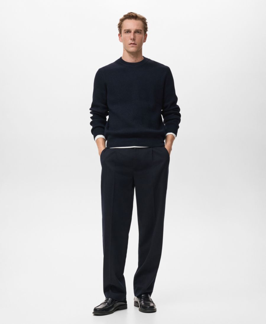 Мужской ребристый свитер из шерстяной смеси MANGO, Navy 7 893₽
