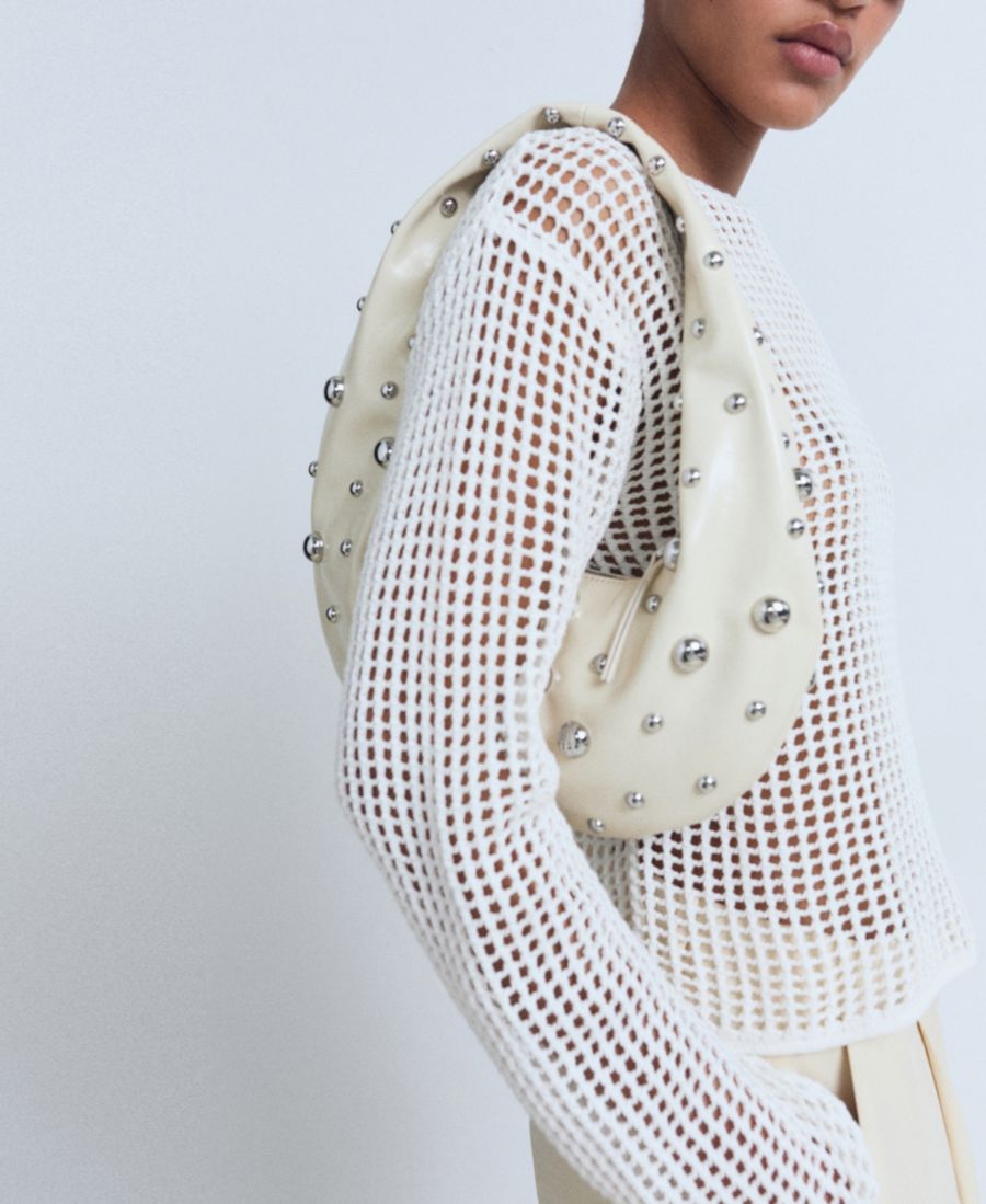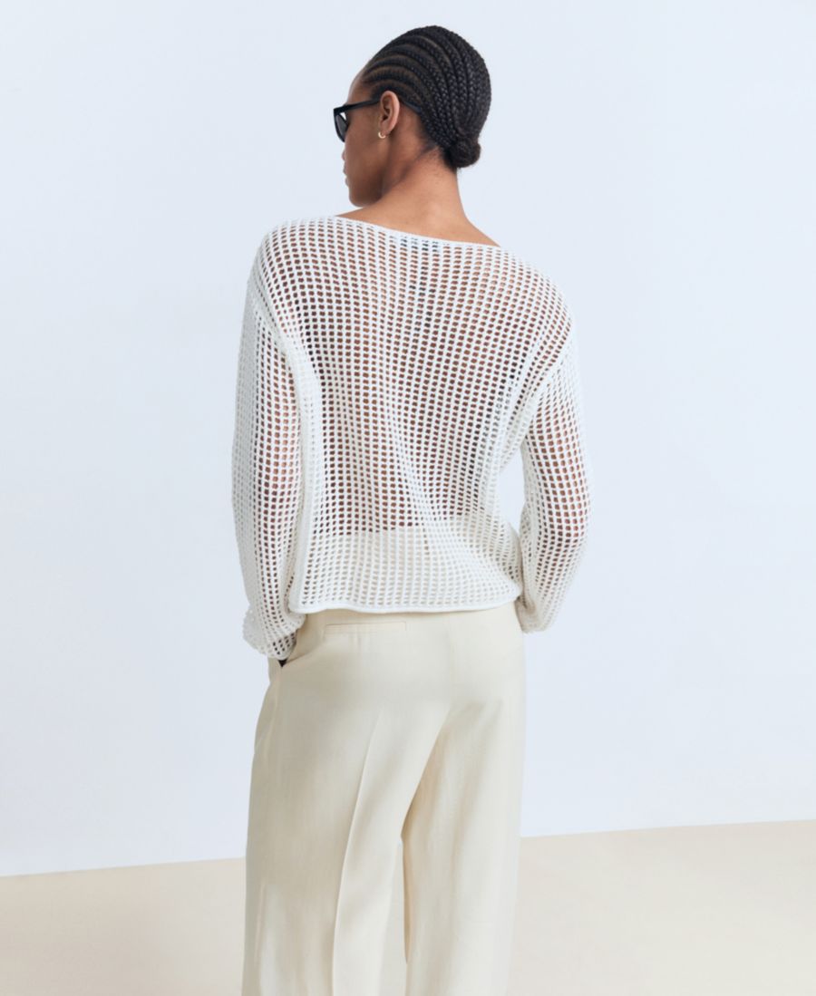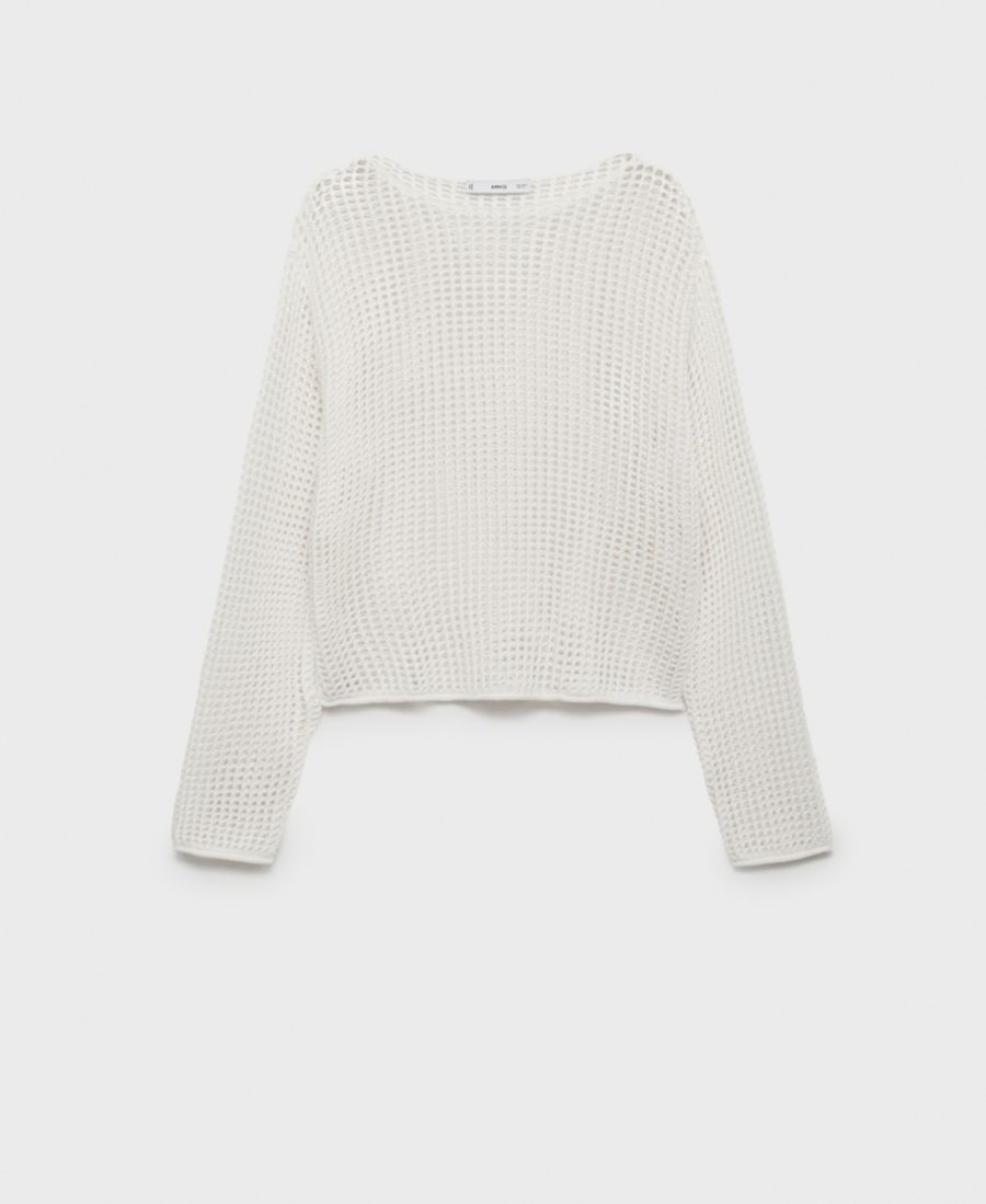 Свитер с длинными рукавами, связанный крючком, от Mango отличается очарованием ручной работы. Этот свитер имеет прямой крой.