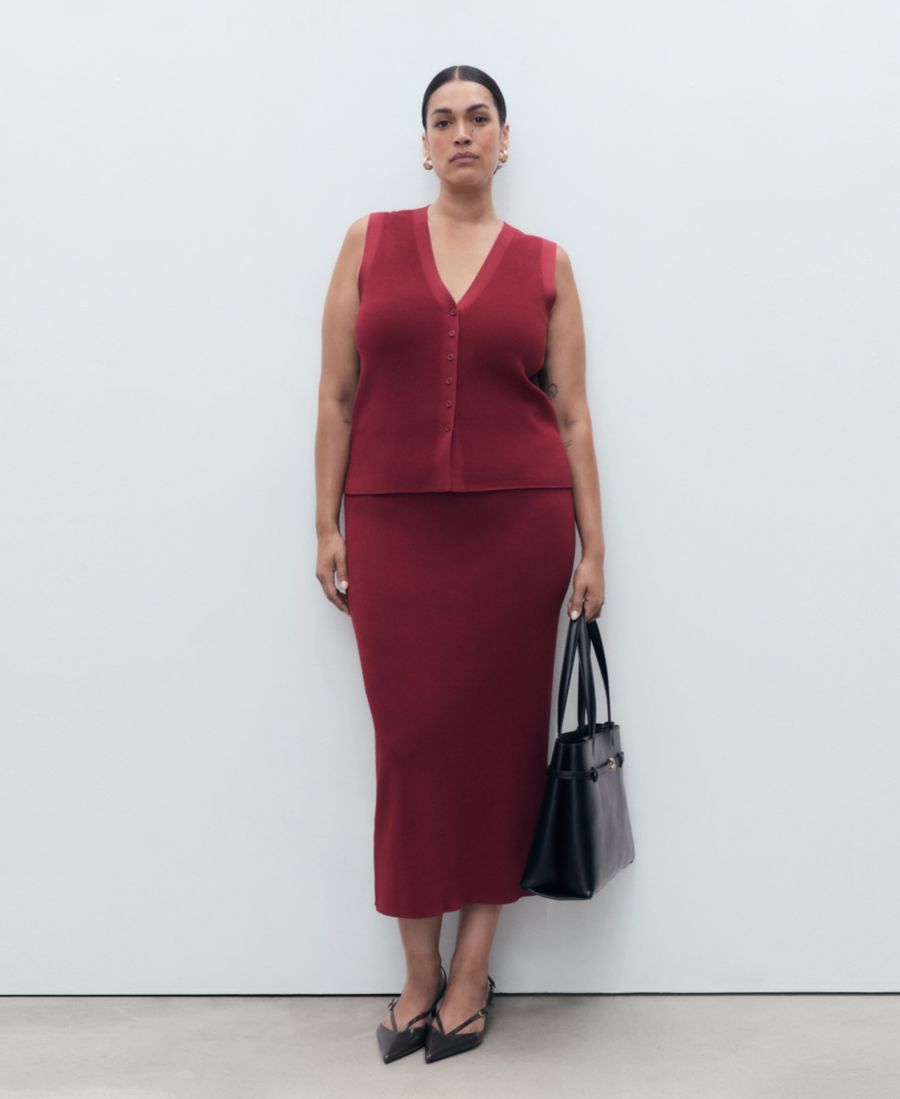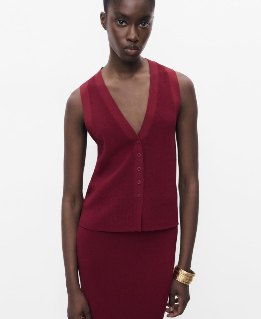Создайте стильный многослойный образ с помощью тонкого трикотажного жилета от Mango. Этот жилет имеет прямой крой.
