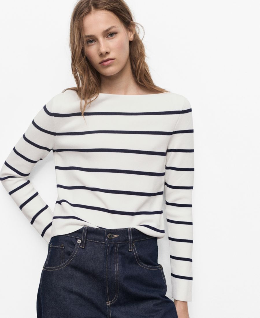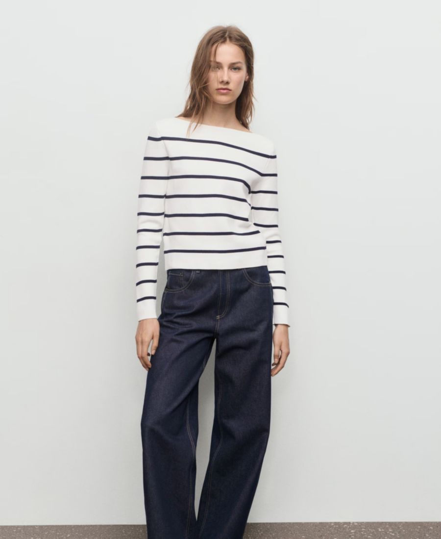 Минималистичный по крою, свитер тонкой вязки с вырезом-лодочкой от Mango отличается универсальностью в носке.