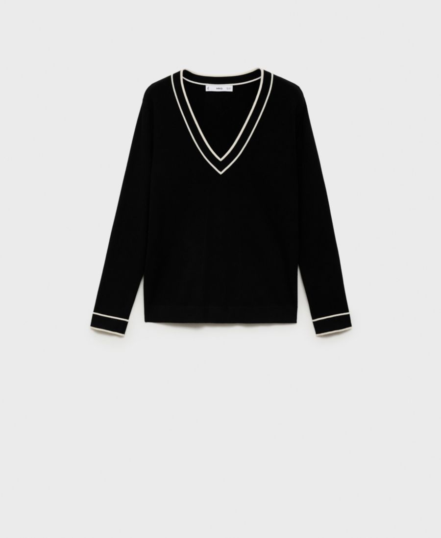 Женский свитер с контрастным V-образным вырезом MANGO, Black