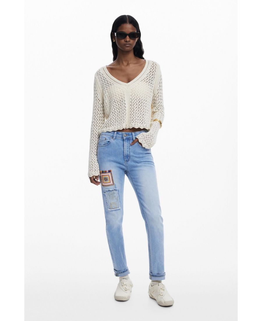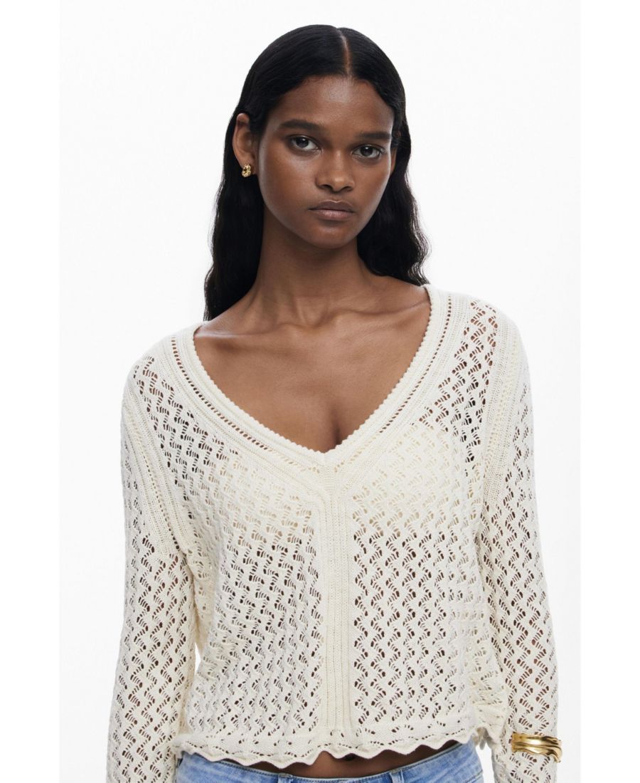 Женский укороченный ажурный свитер Desigual, Light beige