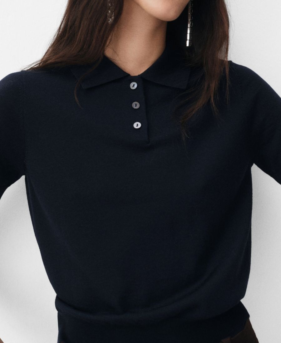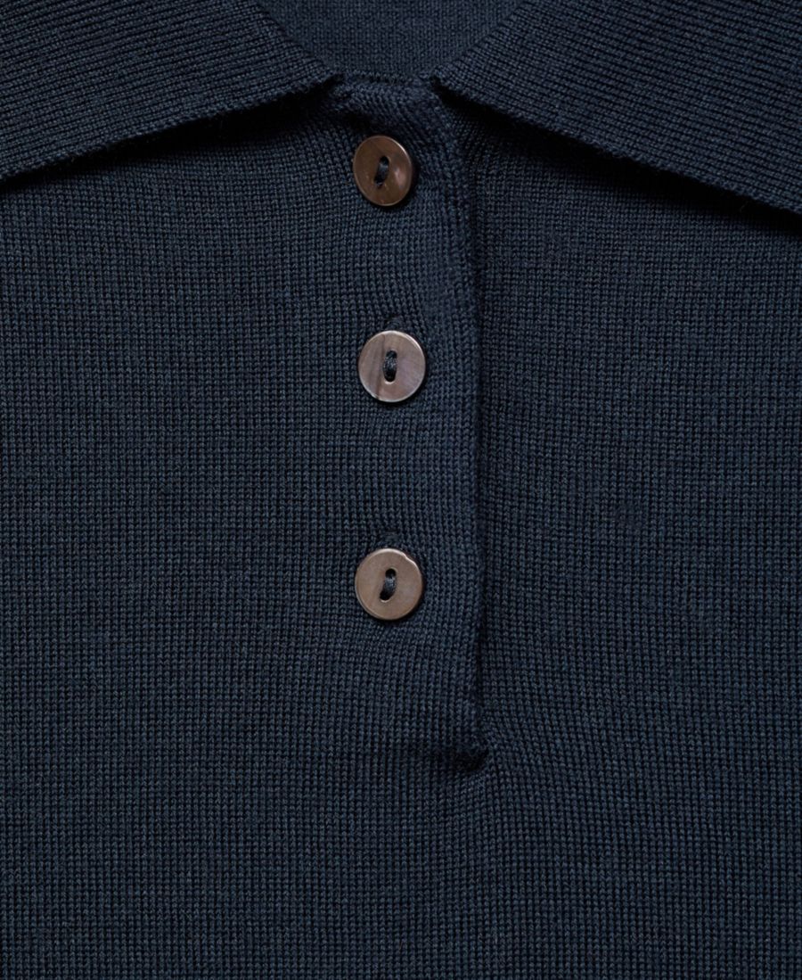 Воротник-поло; застежка на пуговицы.
